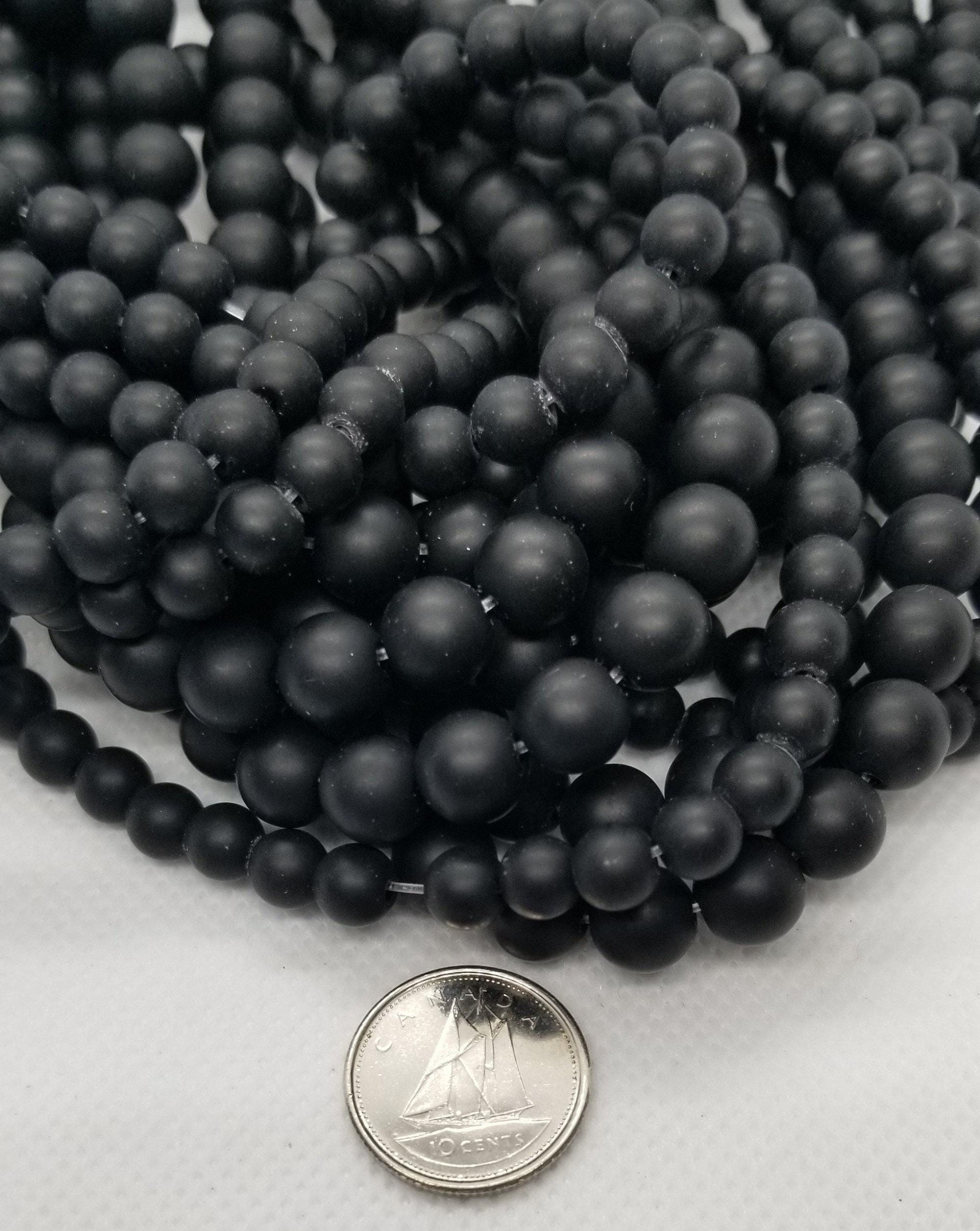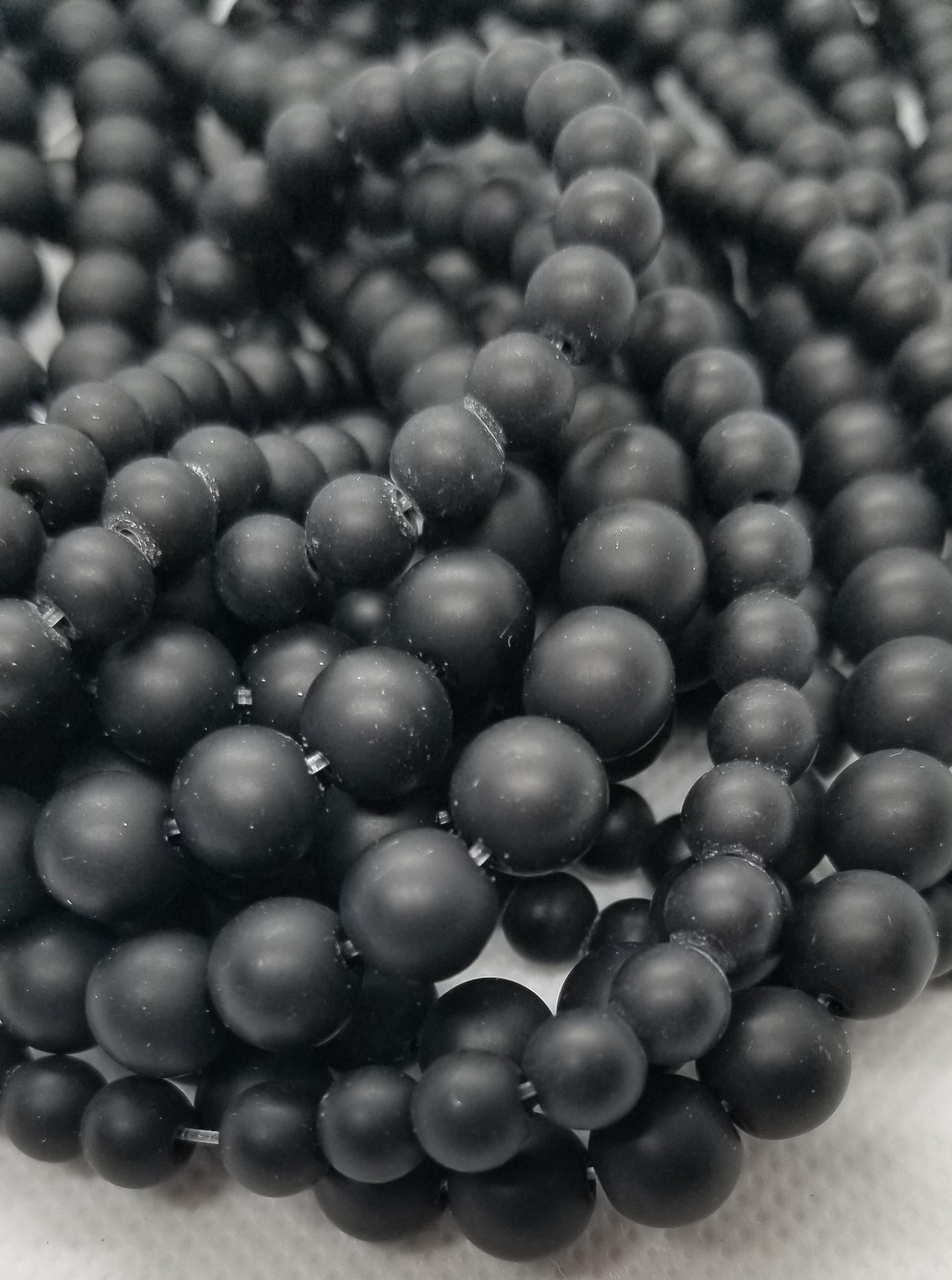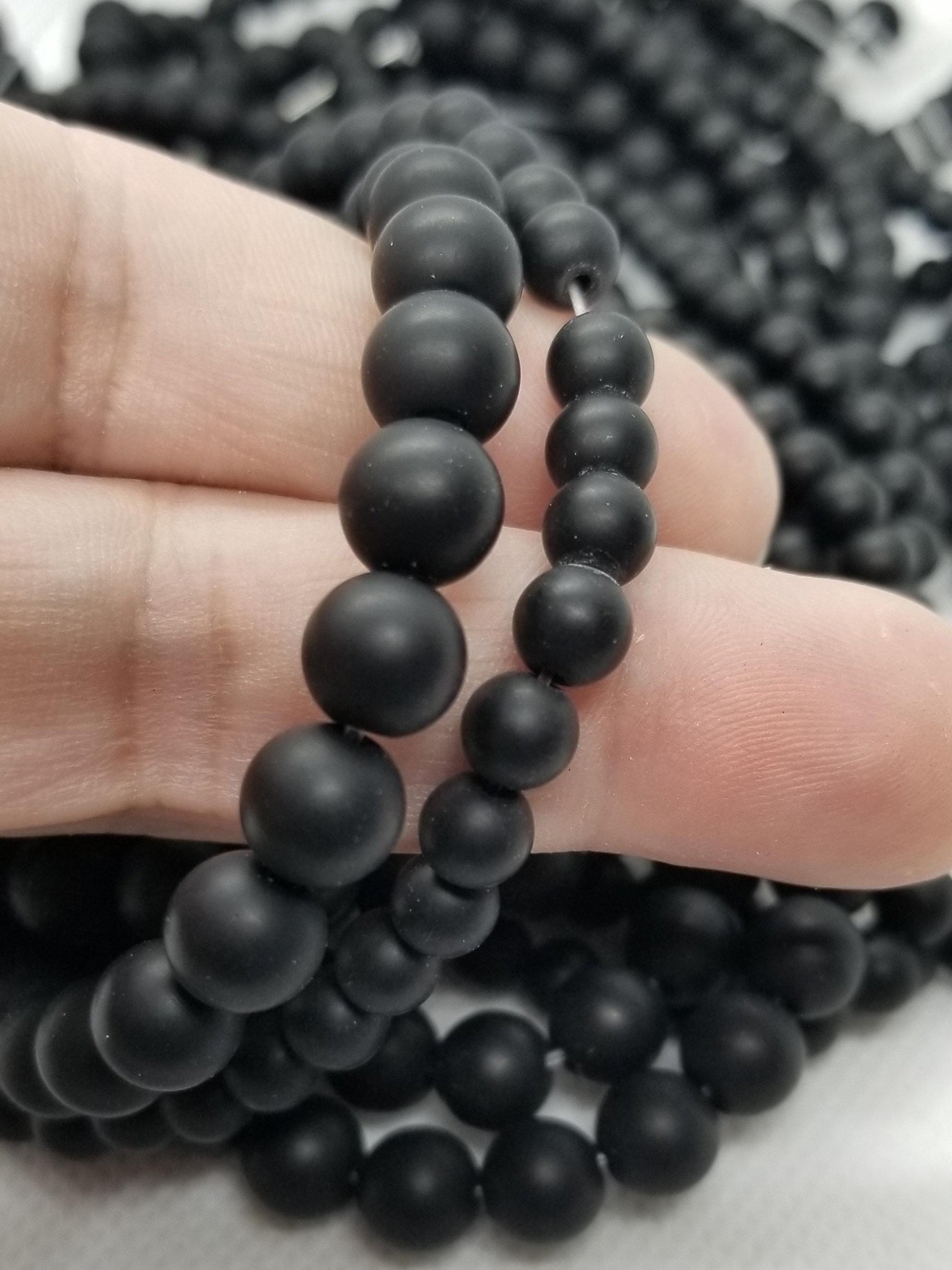 1 strand Matte Black Stone Beads, Dyed, Synthetic, Round, Frosted, 6mm and 8mm, Hole 1mm, Full 15.5 inch strand, Bead count in description