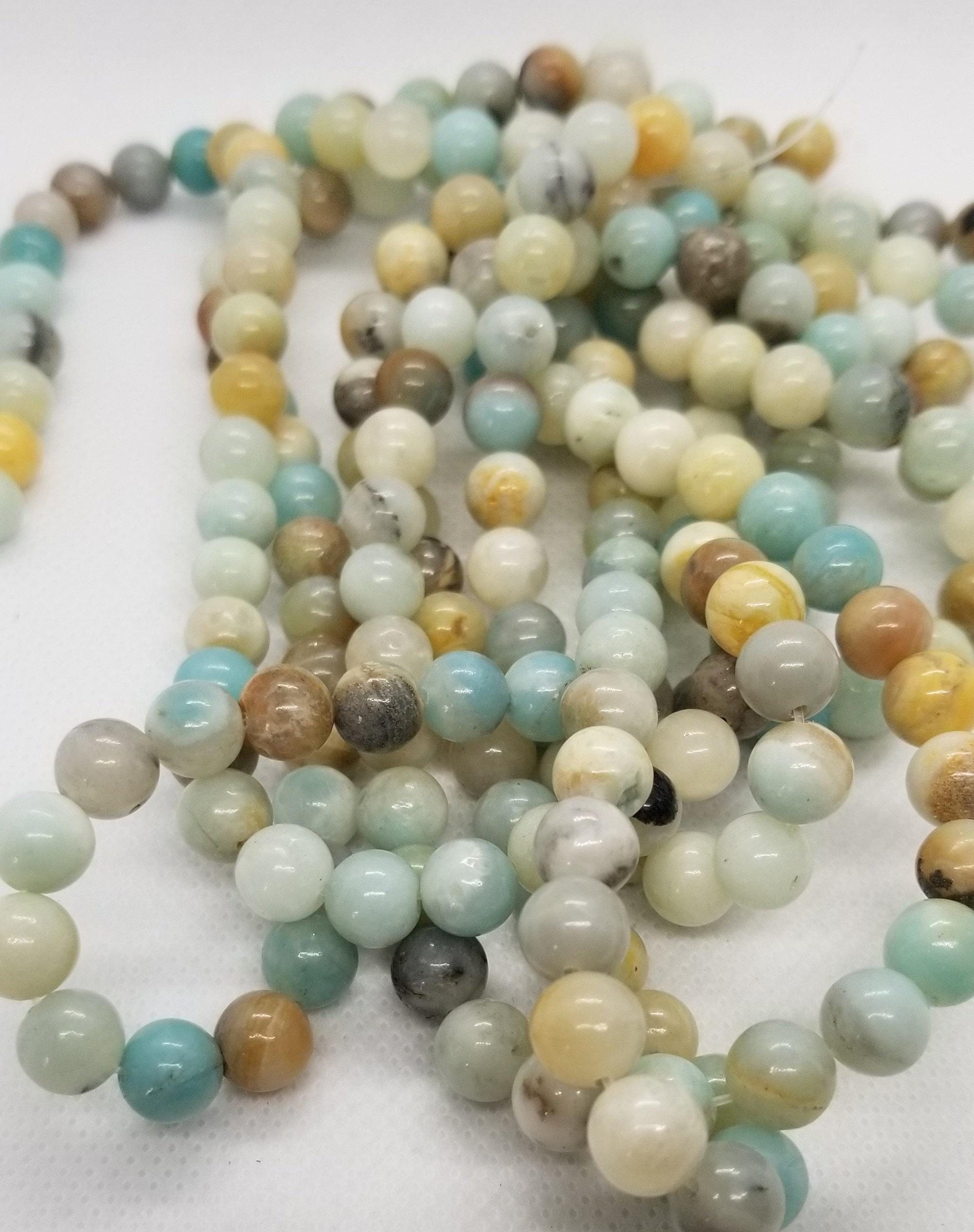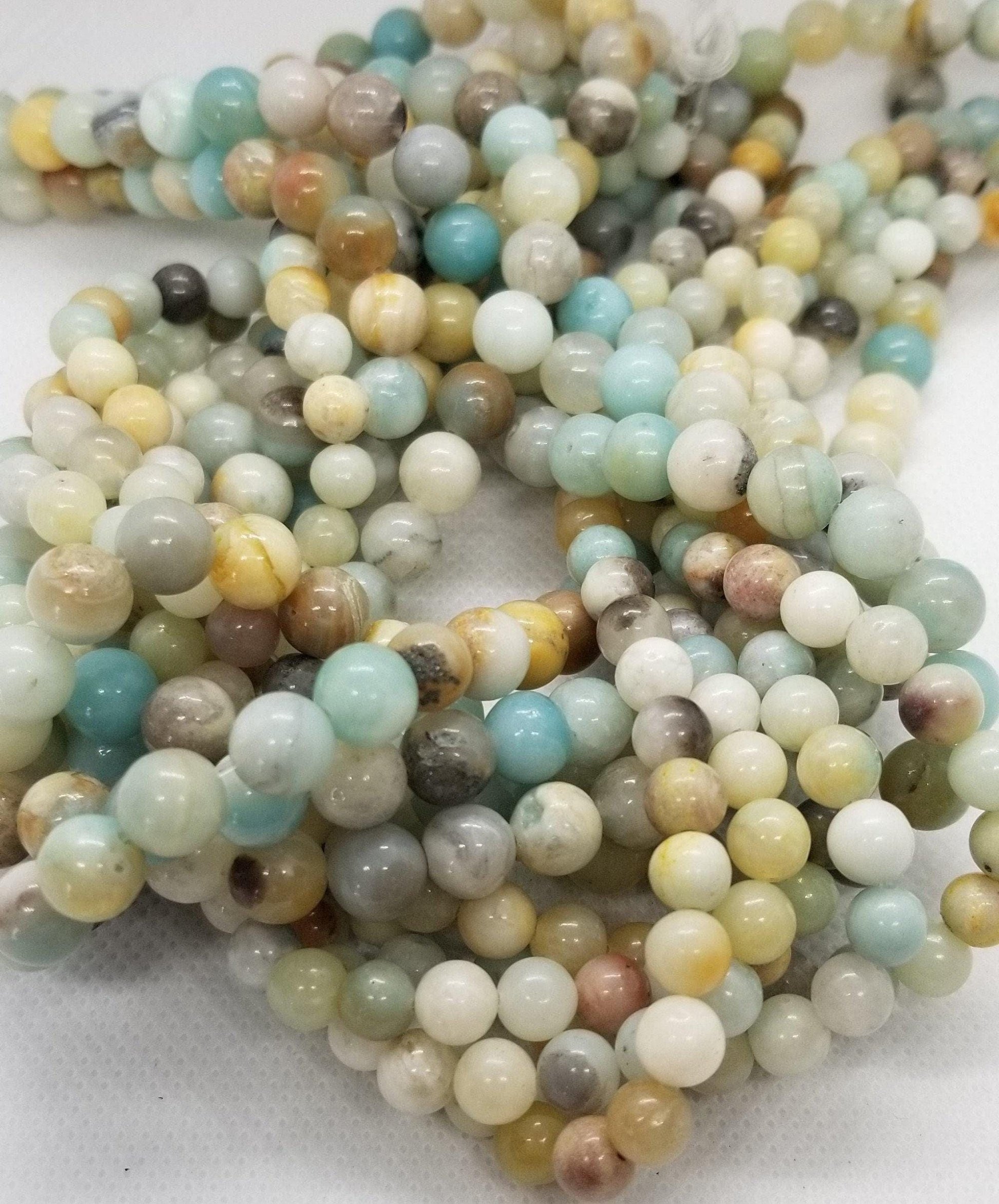 1 Strand Natural Amazonite Beads, Polished, Round, 6mm or 8mm, Hole 1mm, Full strand 15 inches(38cm) each