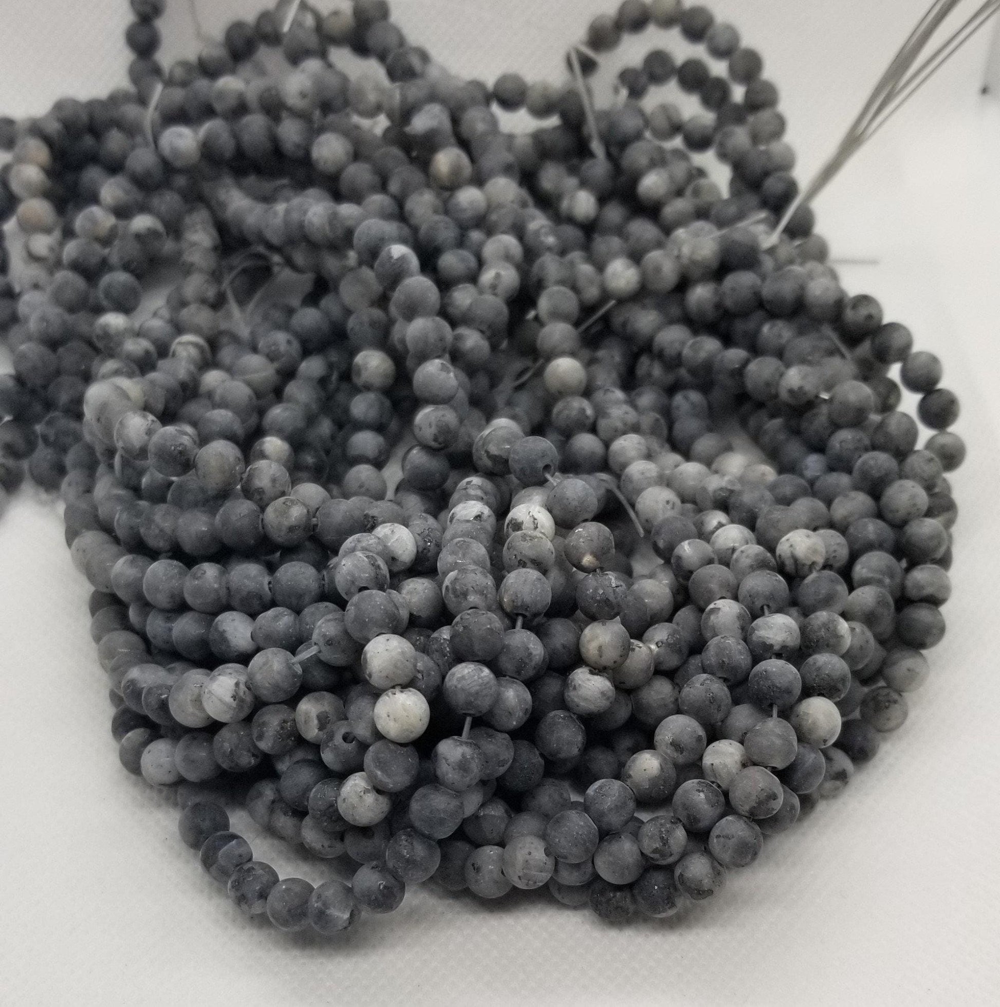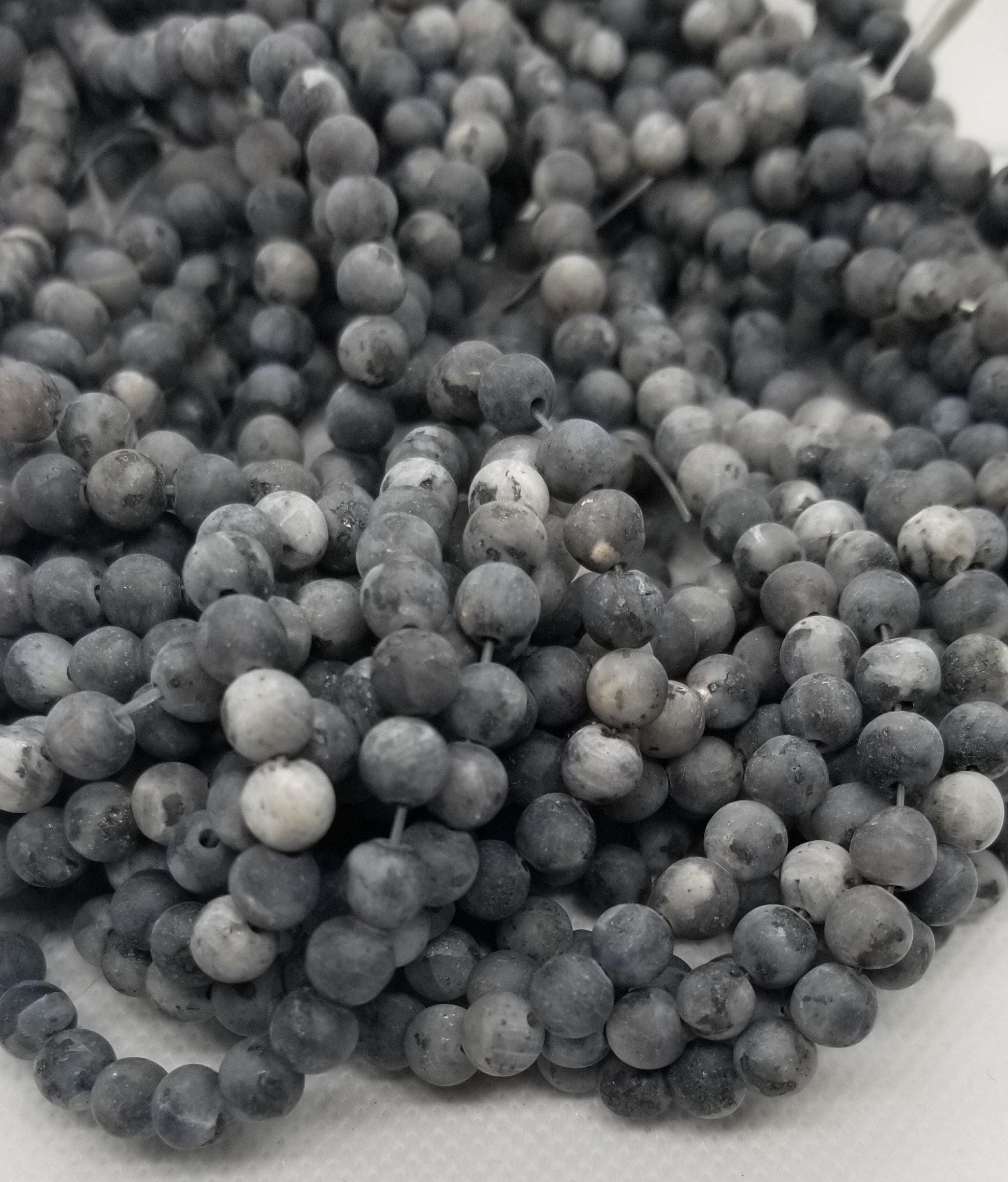 1 strand Natural Black Labradorite Beads, Round, Frosted, Matte Larvikite, 6mm, Hole: 0.8mm; about 55pcs/strand, 14'' Full Strand