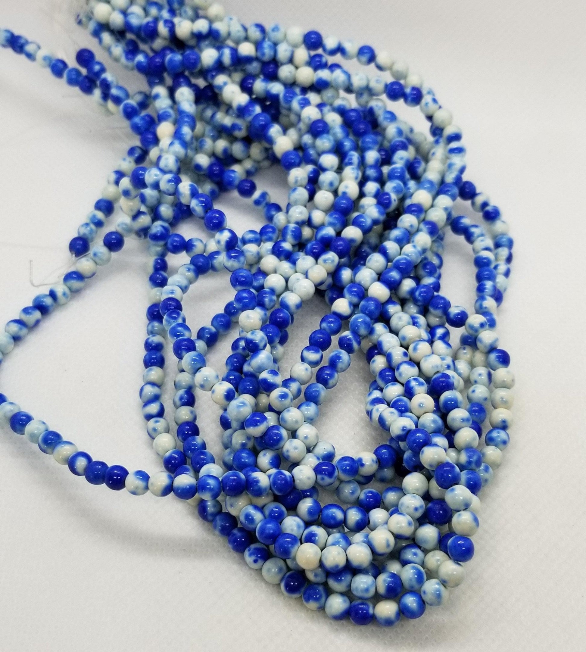 1 strand Ocean White Jade Beads, Round, Synthetic, Dyed Royal Blue, 4mm, Hole 1mm, approx 90pcs/strand, Full 15" strand