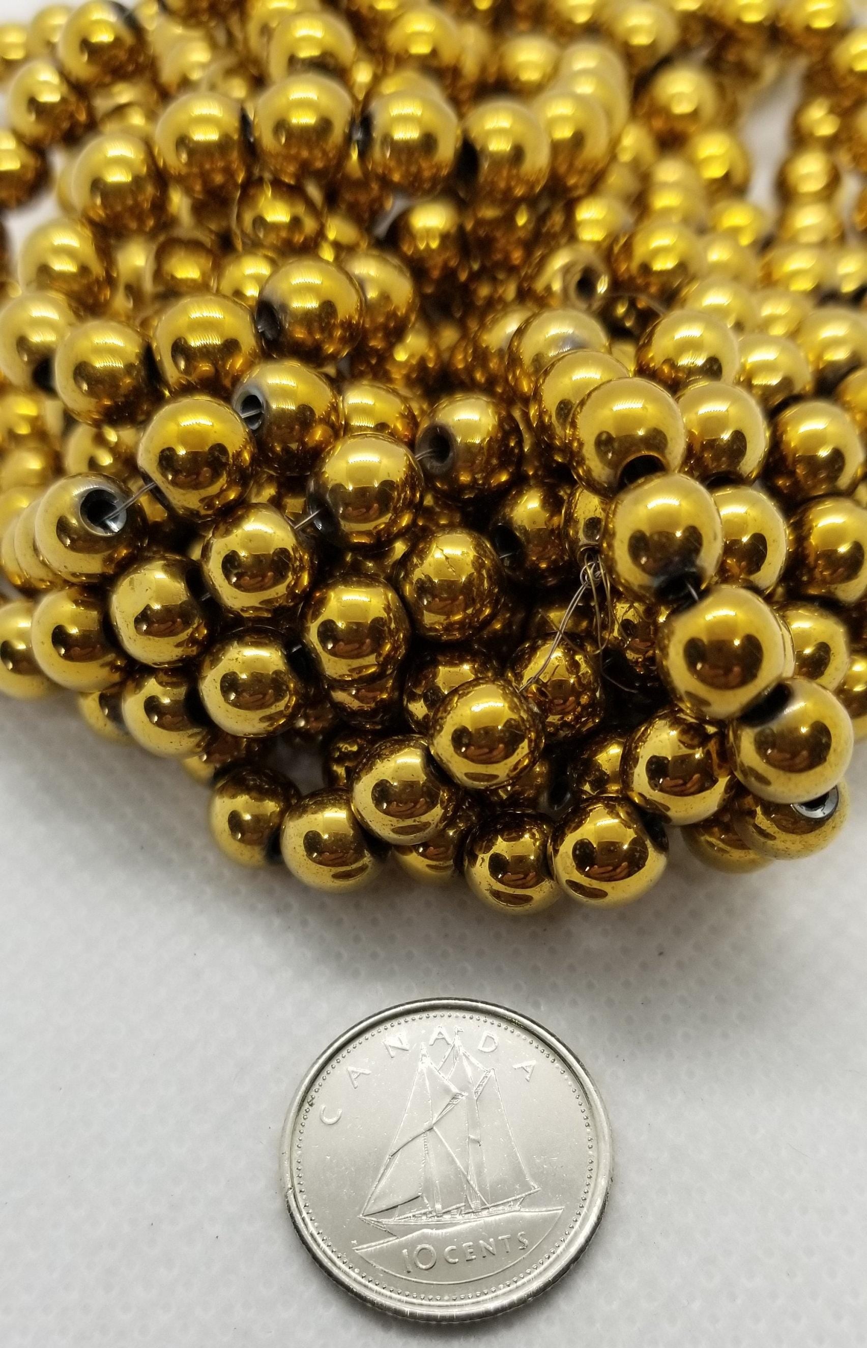 Shiny golden plated hematite beads. These beads will add shine and elegance to any jewelry project. All strands are full, approximately 15" per strand