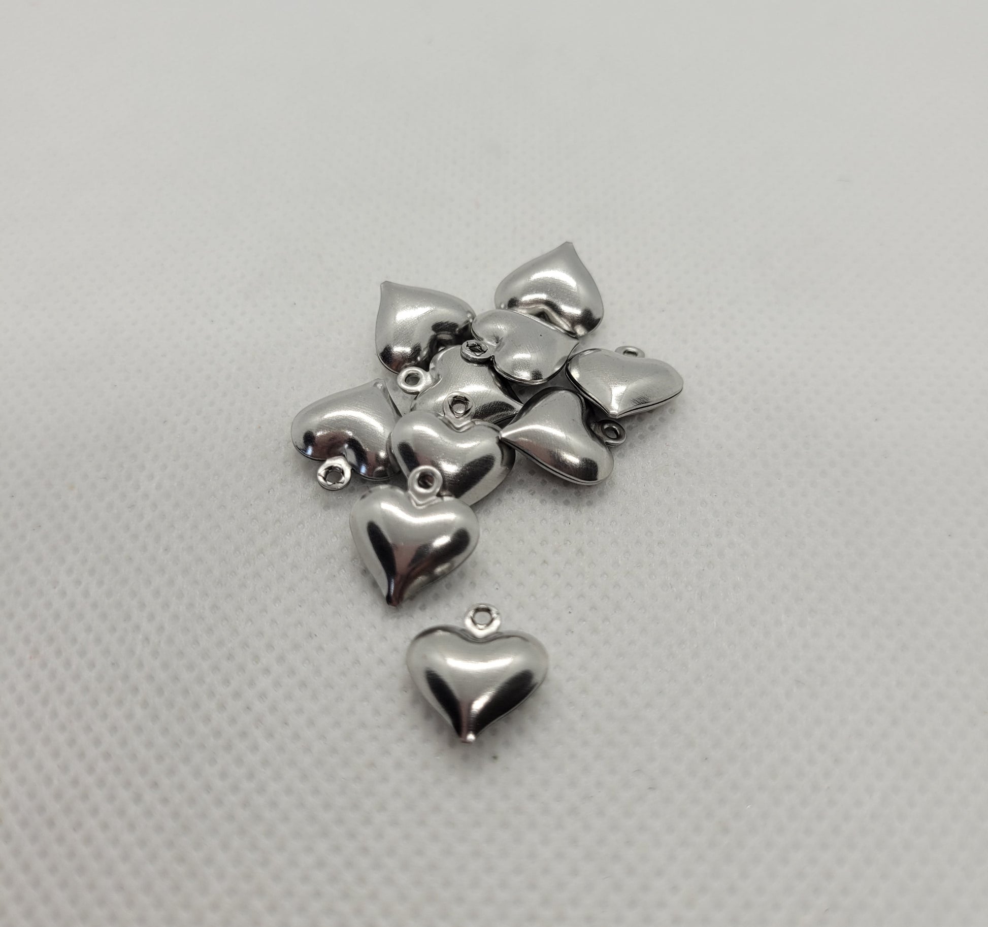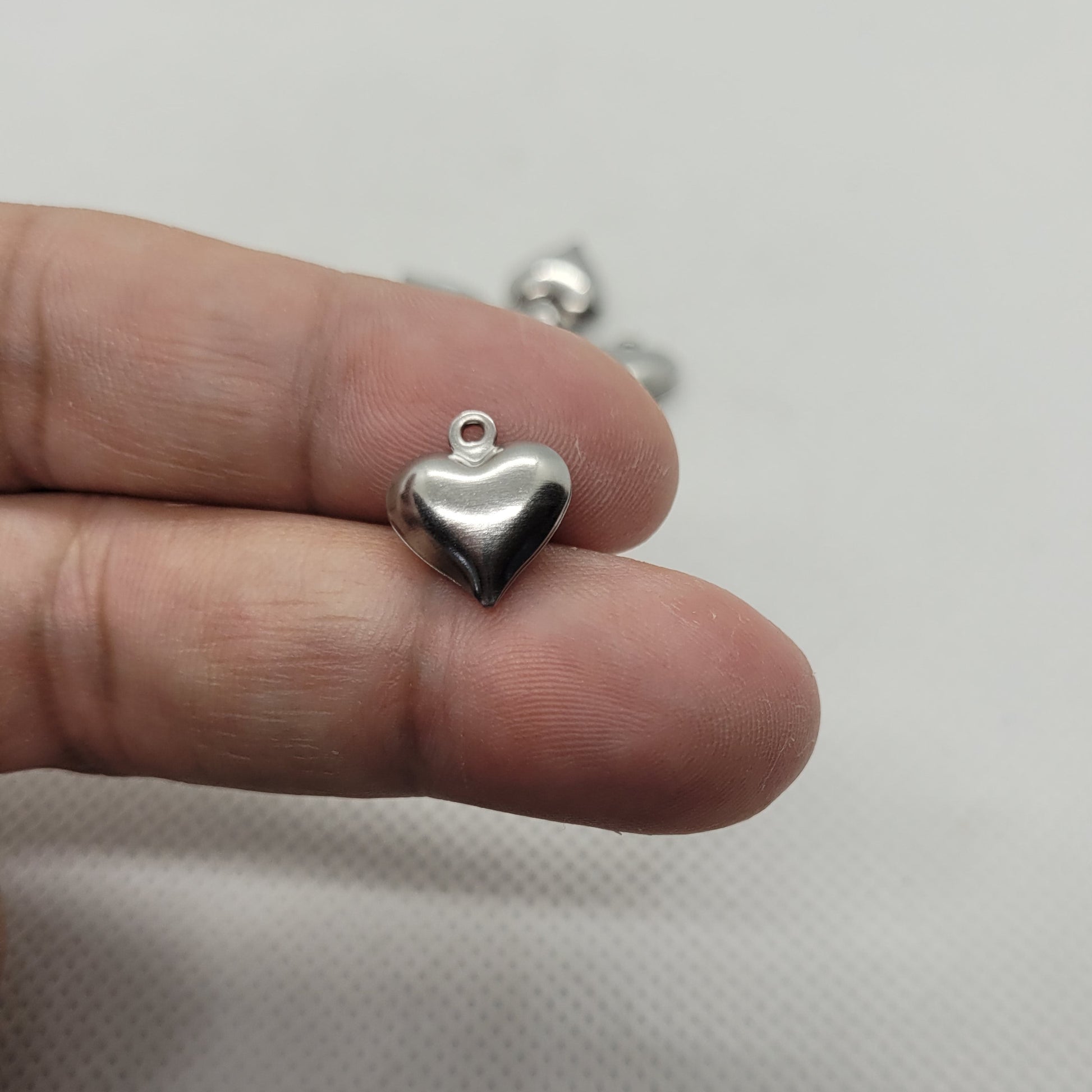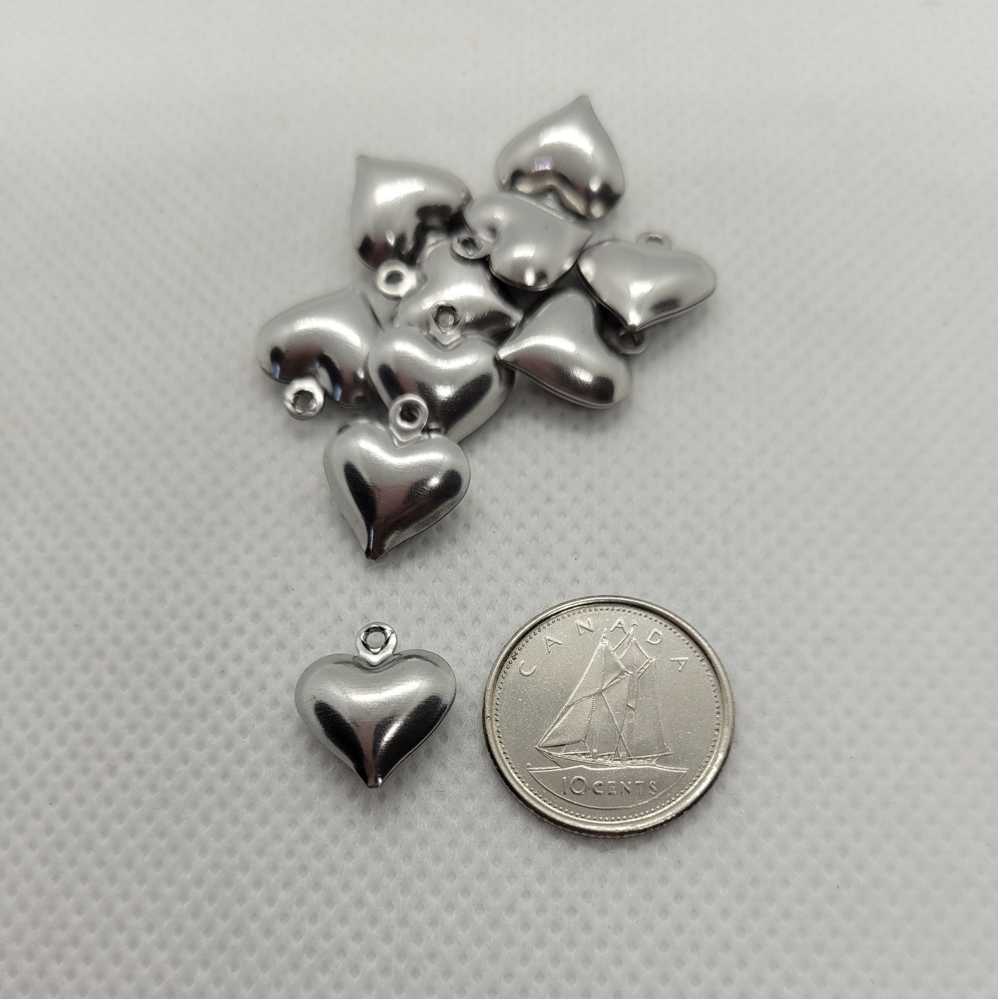 This perfect little set of 10 heart charms is made from durable 304 stainless steel and hollow, so they are very lightweight. Each one measures 13x11.5x4.8mm and has a hole size of 1.2mm. Perfect for jewelry making, scrapbooking, and more. Order yours today!