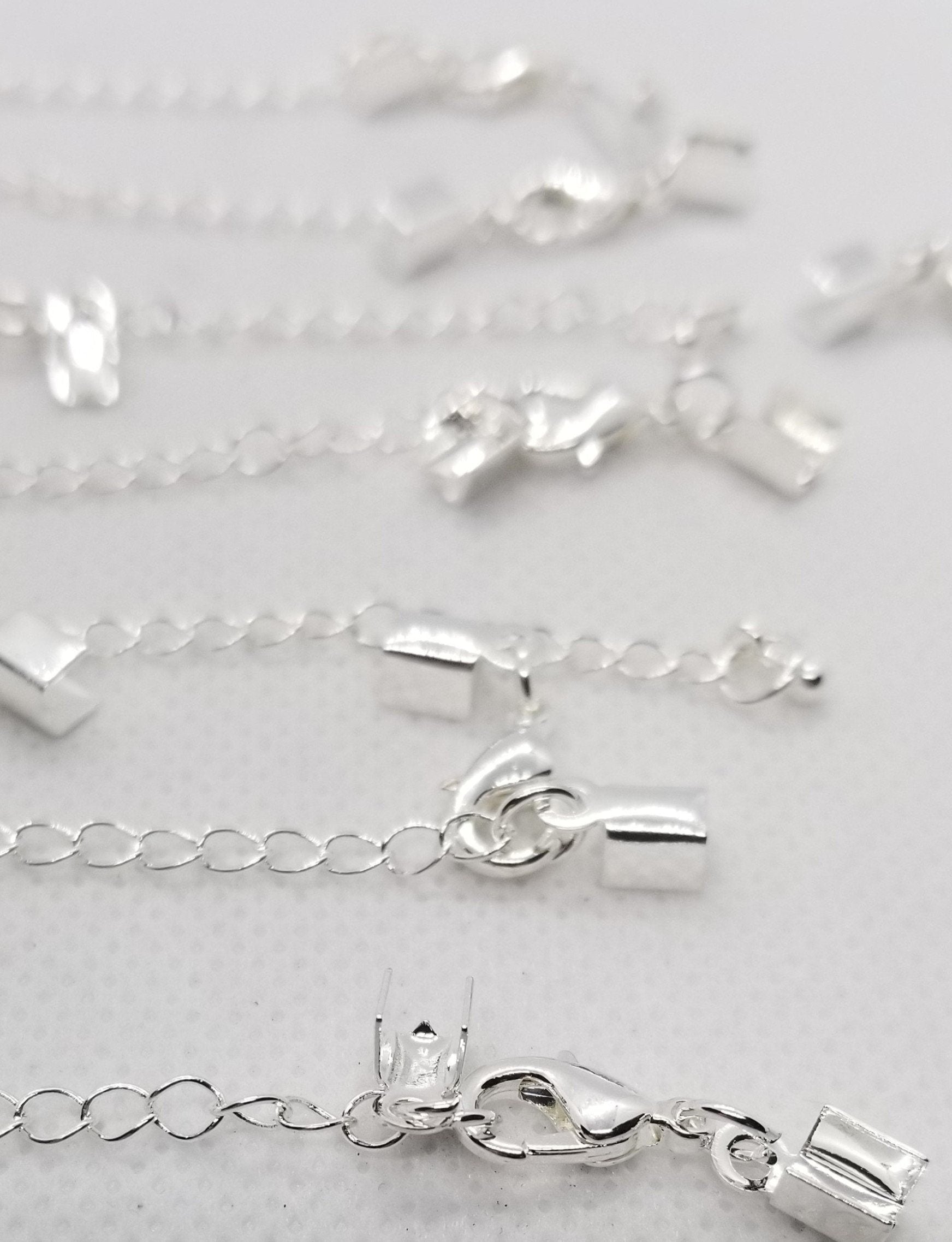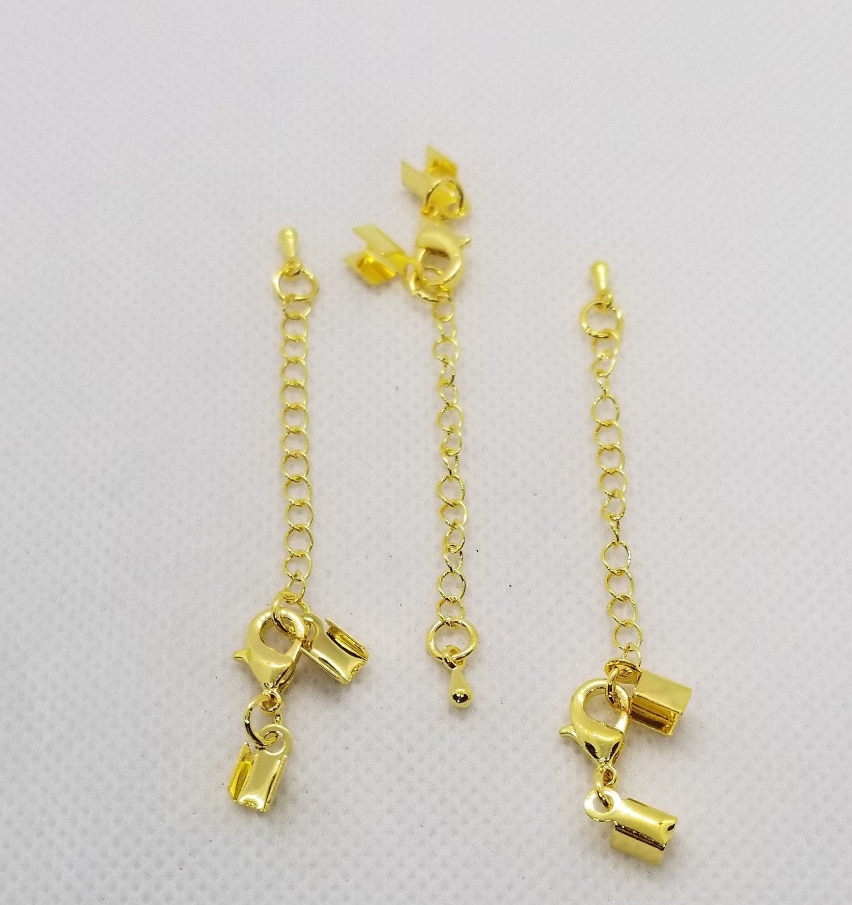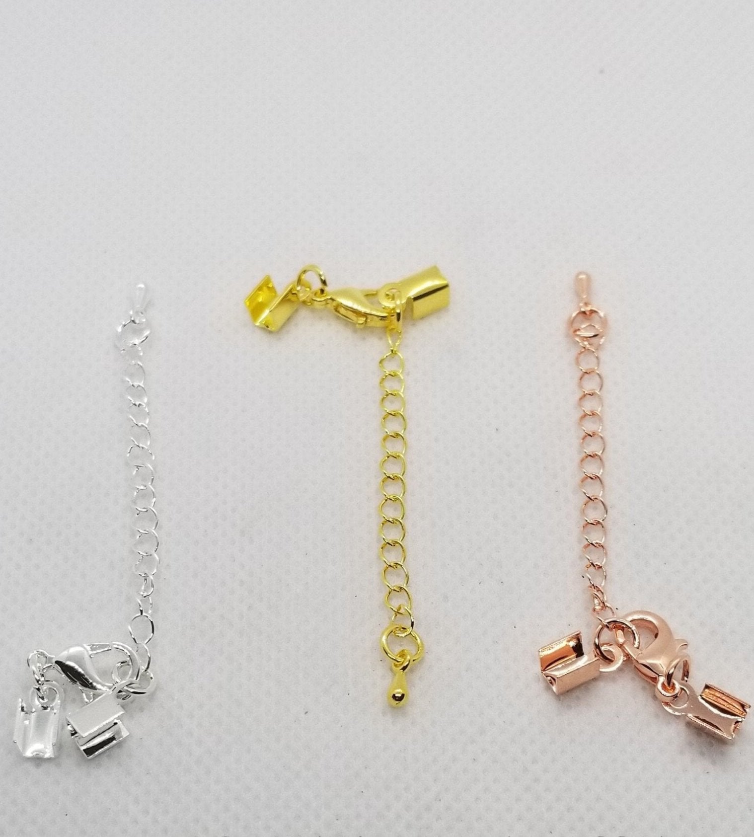 10 pcs Lobster Claw Clasps w Chain Extender and Folding Crimp Ends, Silver, Gold, Rose Gold, Chain 56~62mm long, Clasp 12x8x3mm, End 9x4mm