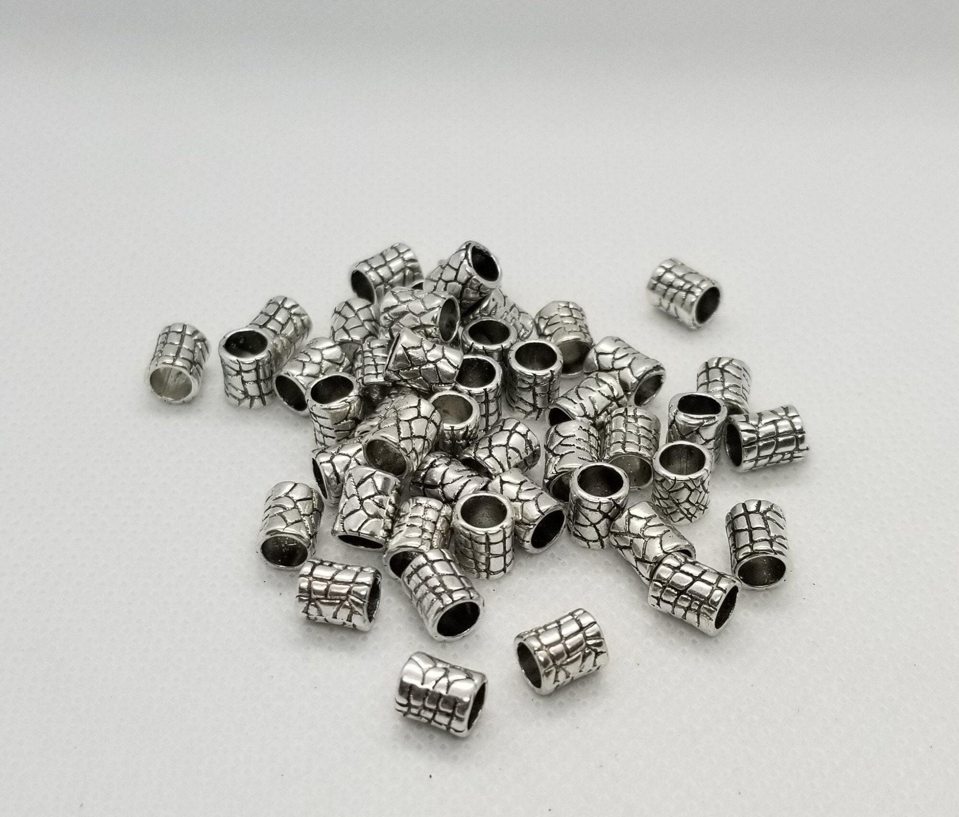 10 pieces Etched Silver Tube Beads, Tibetan Style Alloy, Lead, Nickel, Cadmium Free, Column, Antique Silver, 6x7mm, hole 4mm
