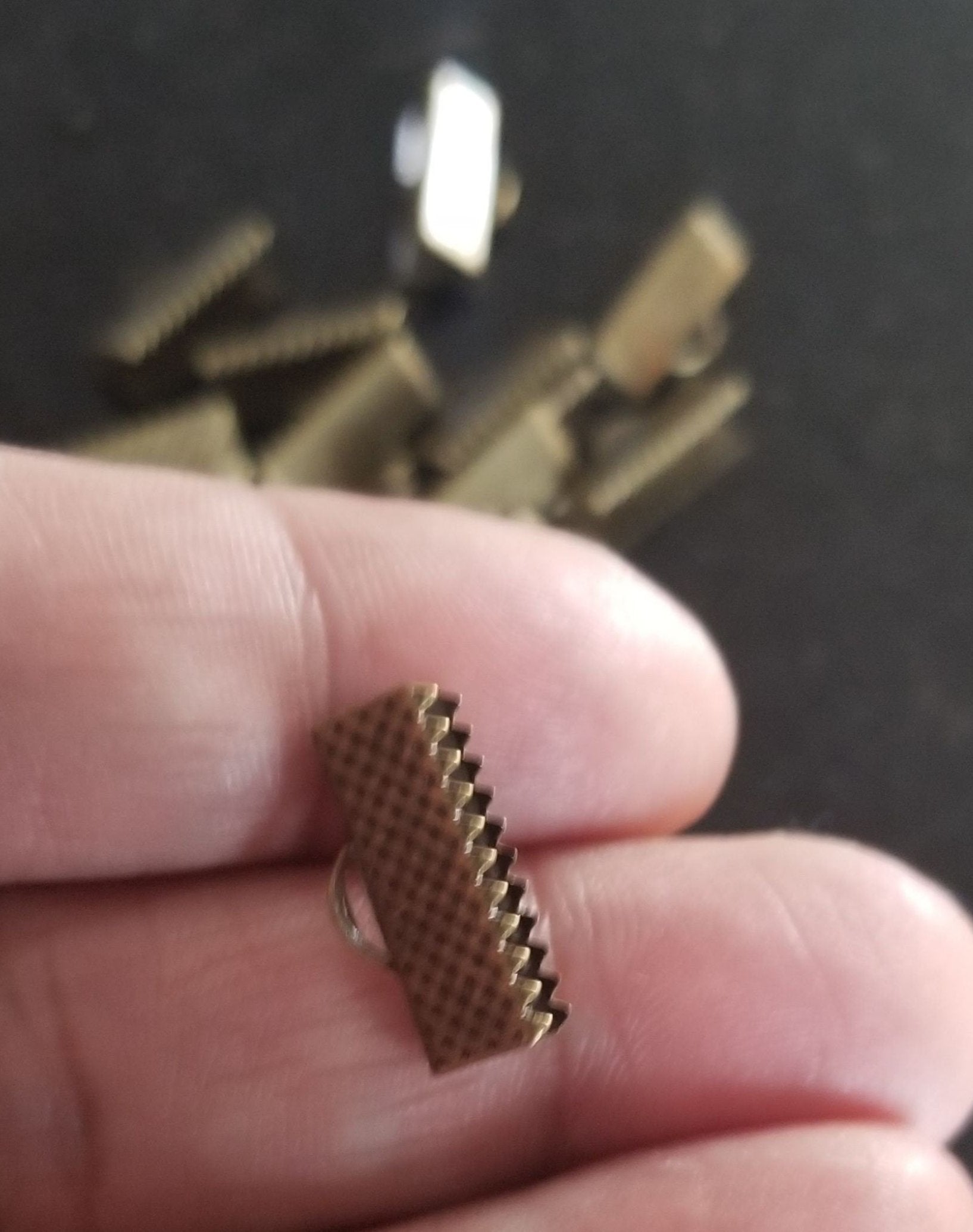 10 pieces Folding Ribbon Crimp Ends, Antique Bronze Color, about 16mm wide, 8mm long, 5mm thick, hole: 1-2 mm