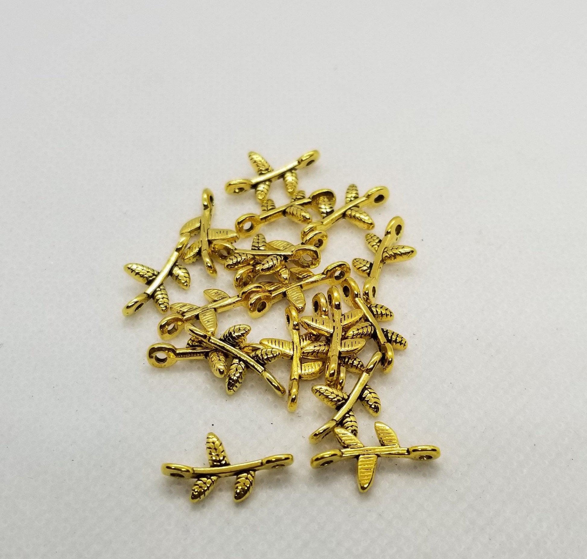 10 pieces Golden Branch Links, Connectors, Lead, Cadmium, Nickel Free, Antique Gold, Tibetan Style Alloy, 17x9.5x3mm, Hole 1.5mm