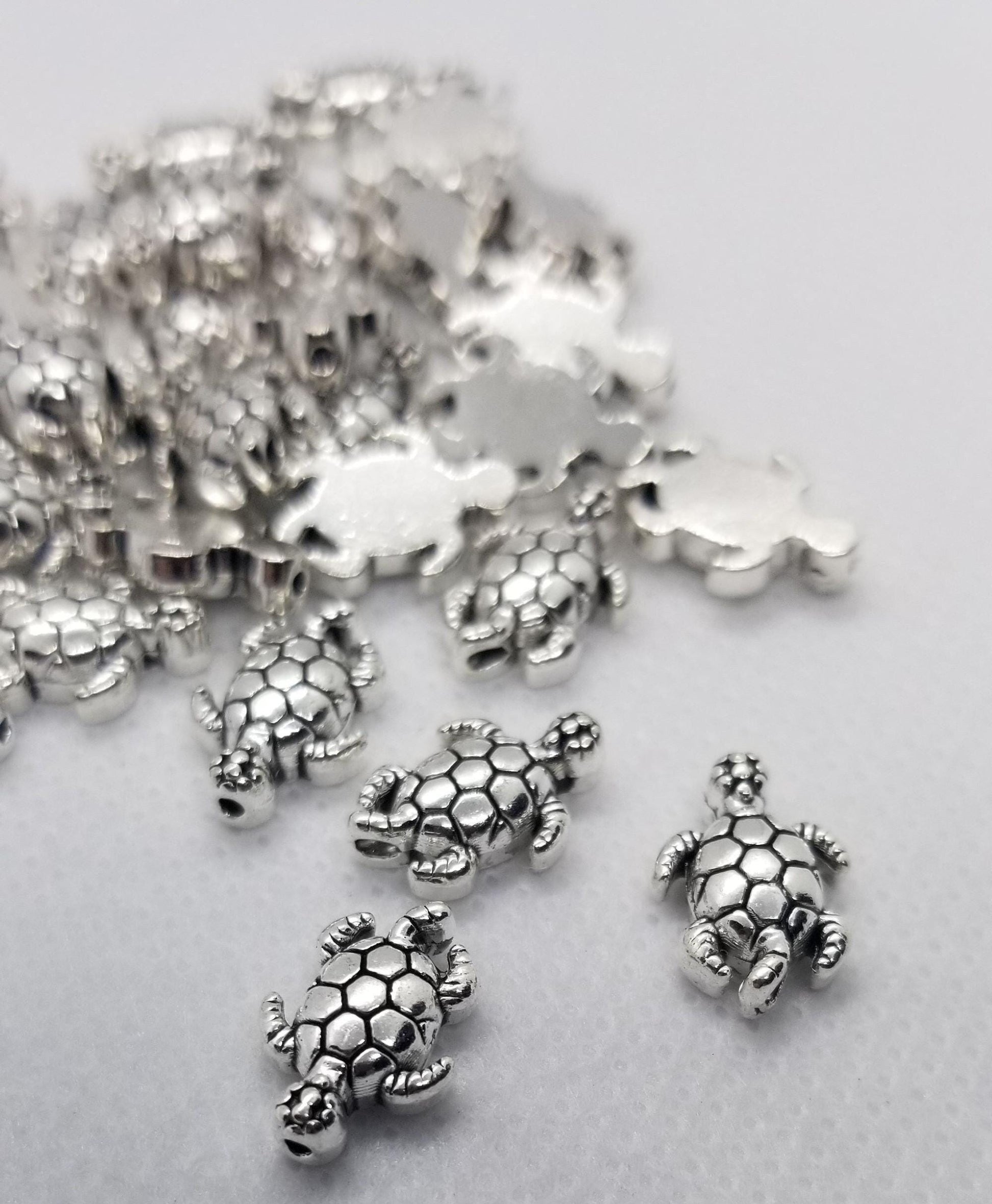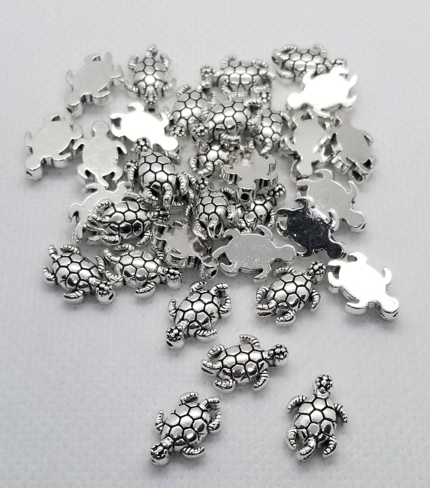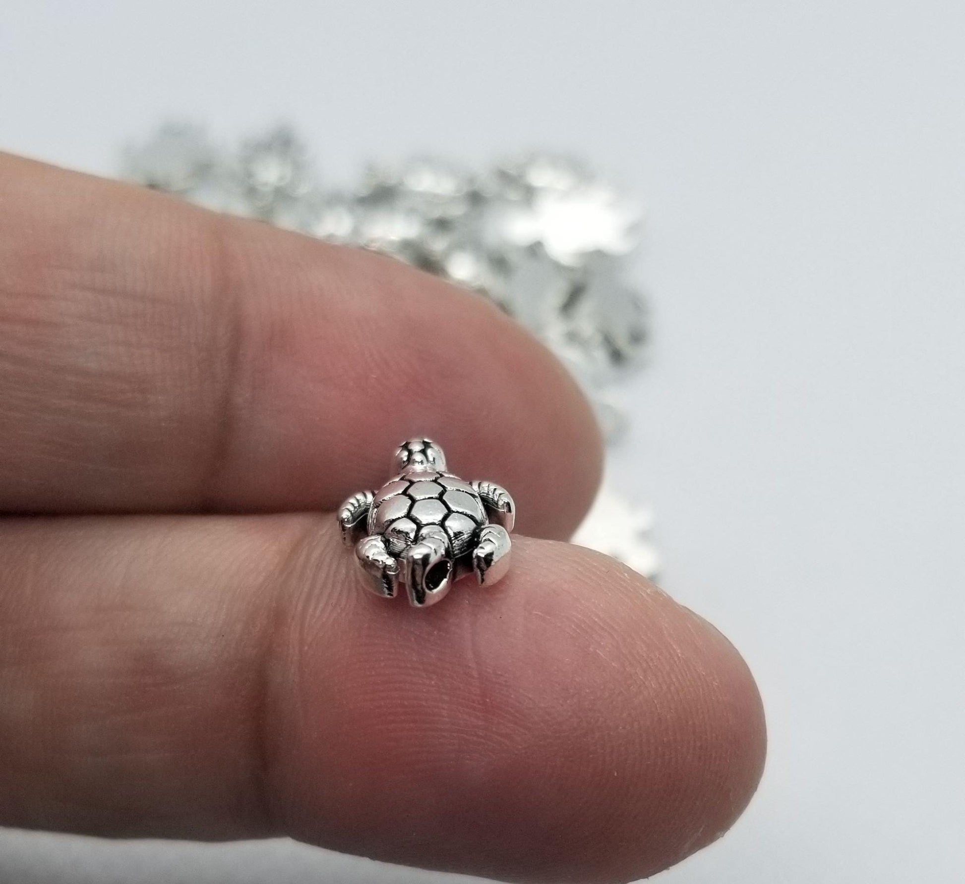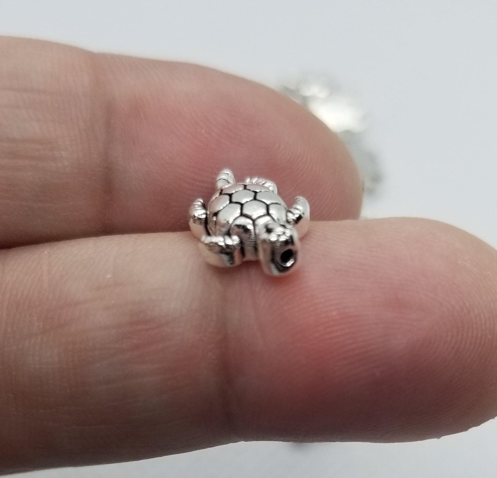 Adorable little Sea Turtle Charm, Tibetan Style Spacer Bead, Tortoise, Turtle, Lead free, Antique Silver, 12x9x4mm, Hole 1mm, Hole goes through from nose to tail, Flat back, perfect for necklace or bracelet, 10 pieces