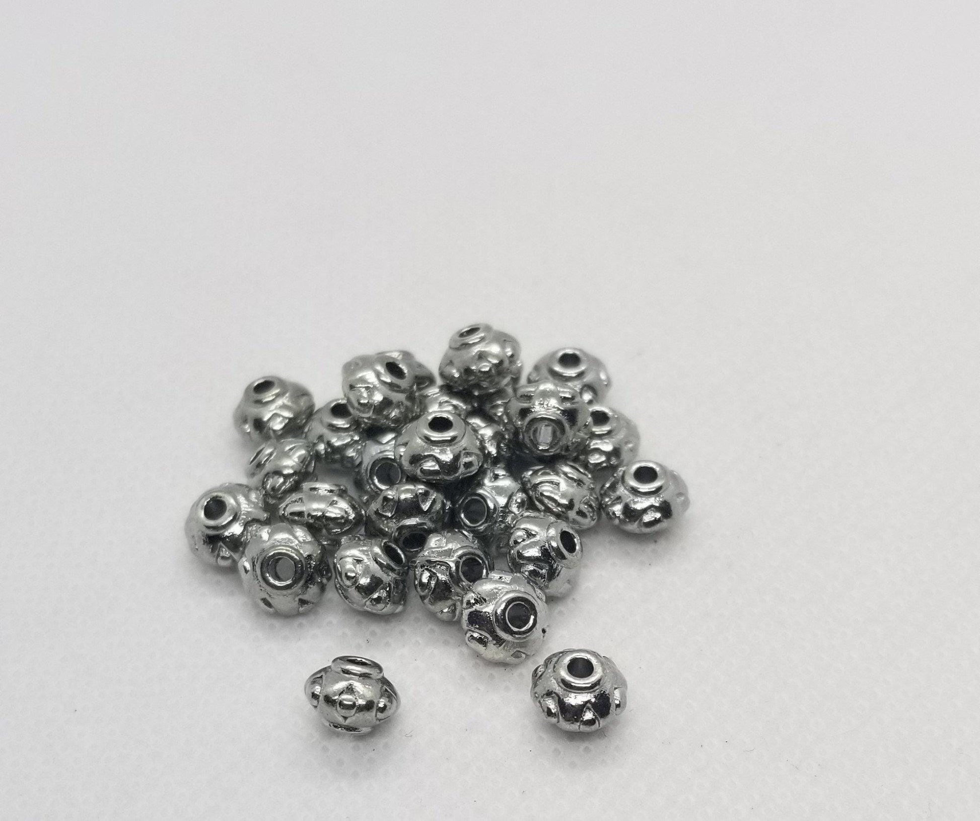 10 pieces Silver Bicone Spacer Bead, Tibetan Style, Cadmium and Lead Free, Donut, 7x5mm, Hole 2mm