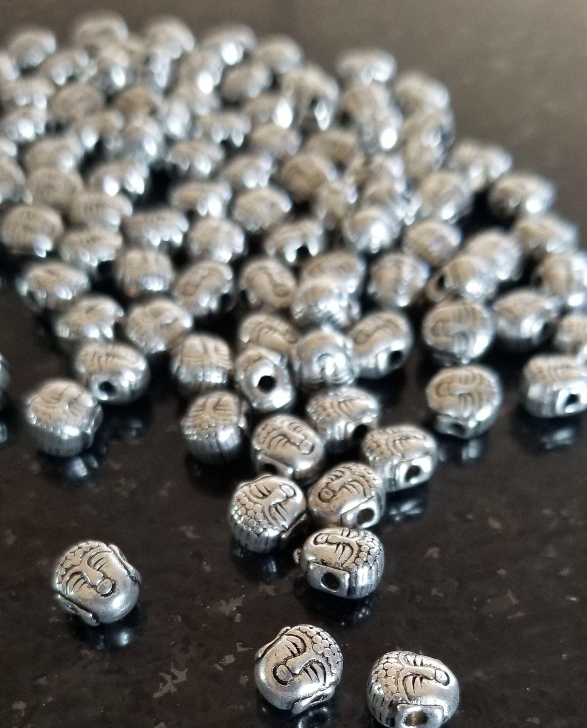 10 pieces Silver Buddha Head Charm, Tibetan Style Alloy, Spacer Beads, Lead Free, 8x7x5.5mm, Hole: 1.5mm