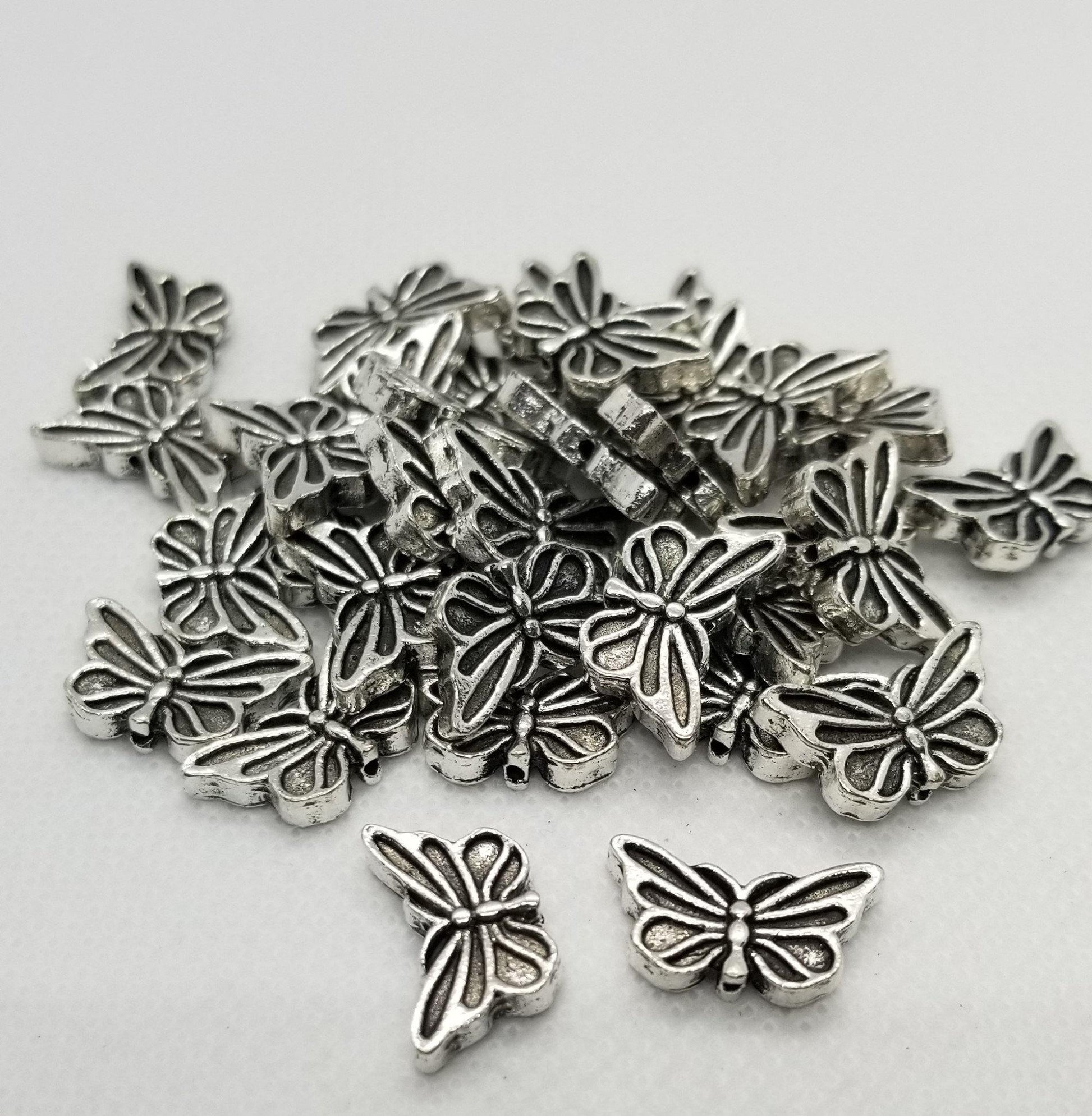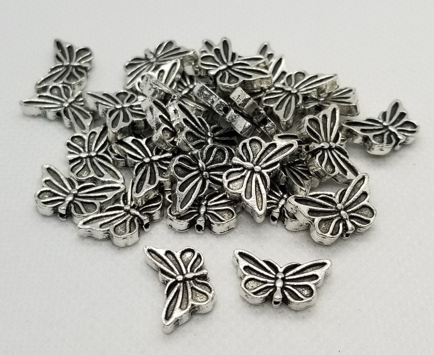 10 pieces Silver Butterfly Charm, Tibetan Style Alloy, Cadmium, Nickel, Lead Free, Antique Silver, 10x16.5x3mm,Hole 1mm, Hole Nose to Tail