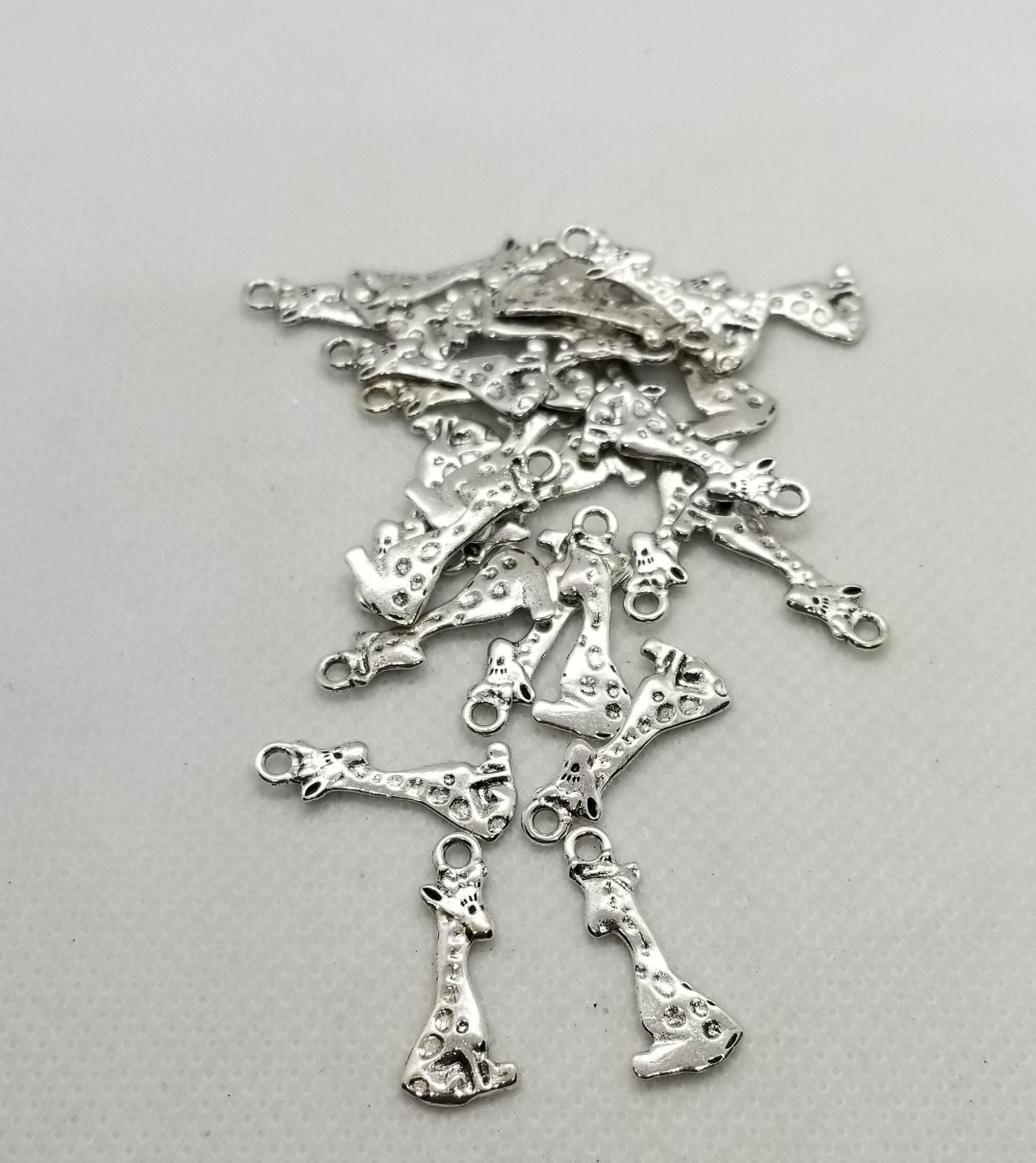 10 pieces Silver Giraffe Charms, Adorable Pendants, Cadmium & Lead Free, Sitting Giraffe, Antique Silver, 22x8x1mm, Hole 2mm