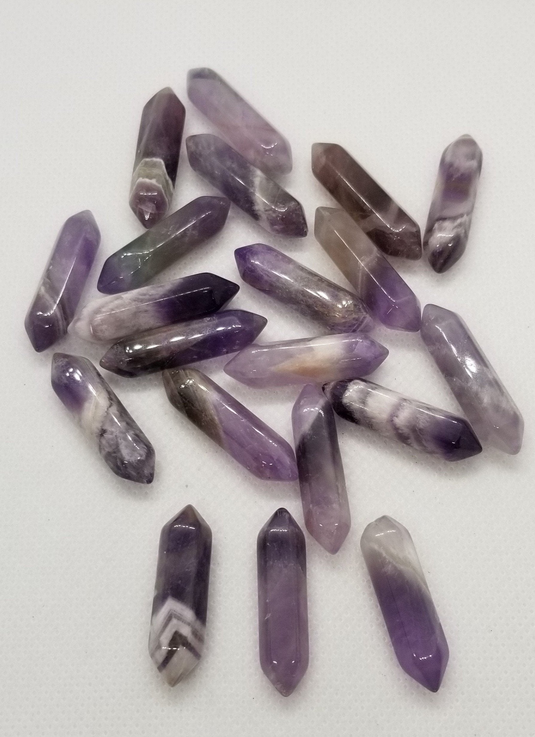 2 pieces Natural Amethyst Double Terminated Point Crystals, Polished, No Hole/Undrilled, Bullet, approx 30x8mm, about 1.25 inches