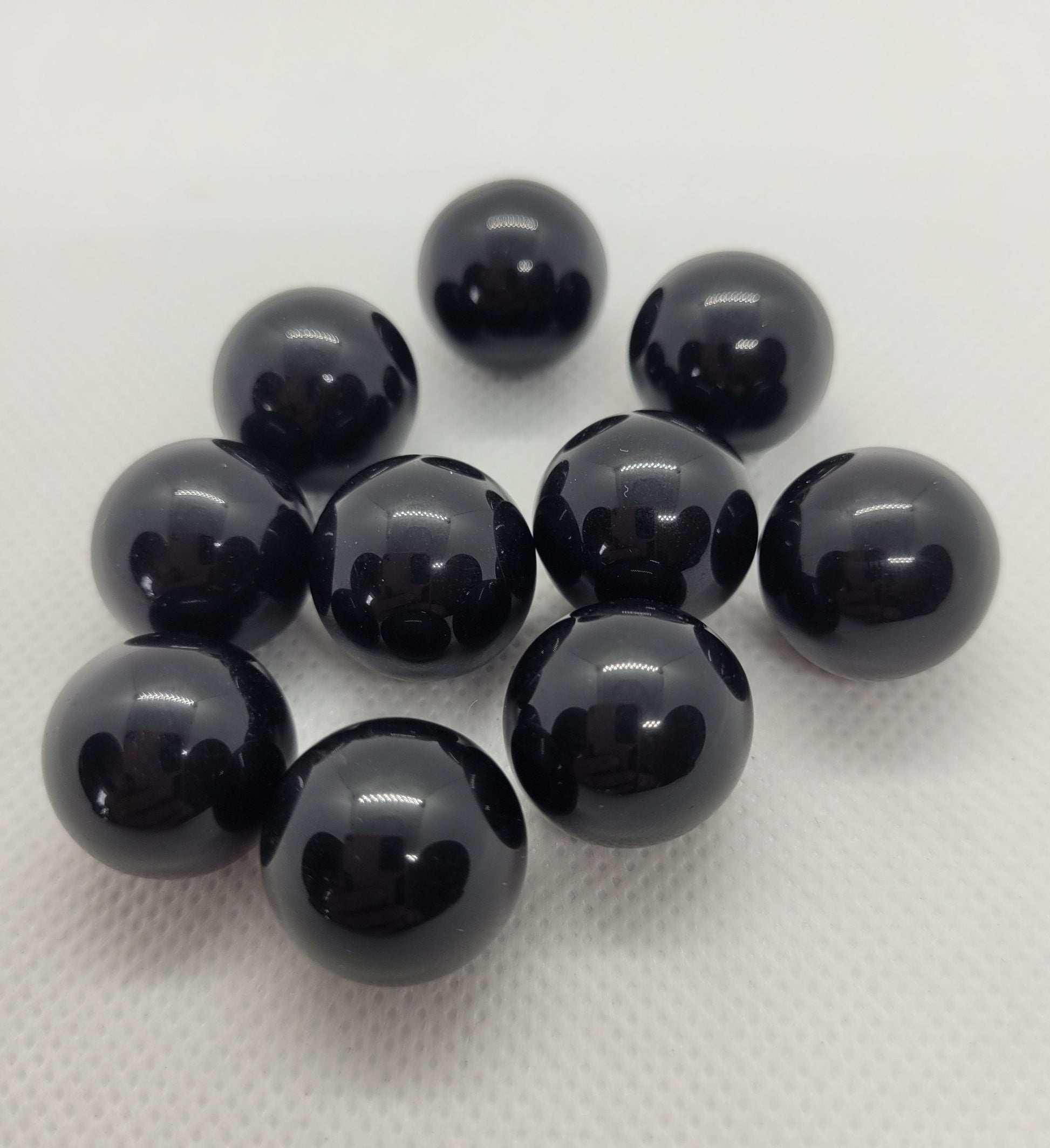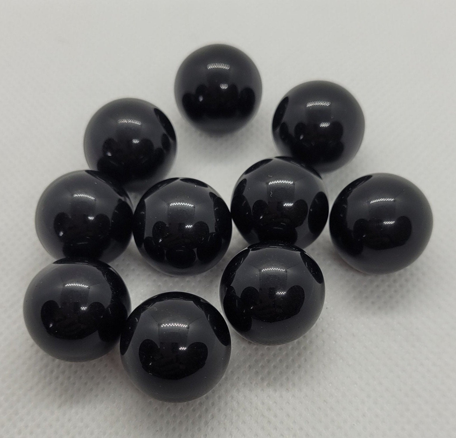 Bring the power of black obsidian into your jewelry creations with these natural obsidian gemstone spheres. These round beads measure approximately 18mm in diameter, perfect for crafting elegant and unique pieces. With an unblemished surface, these obsidian spheres exude a sense of mystery and sophistication. Add a touch of natural beauty to your designs with these mesmerizing round obsidian beads.
