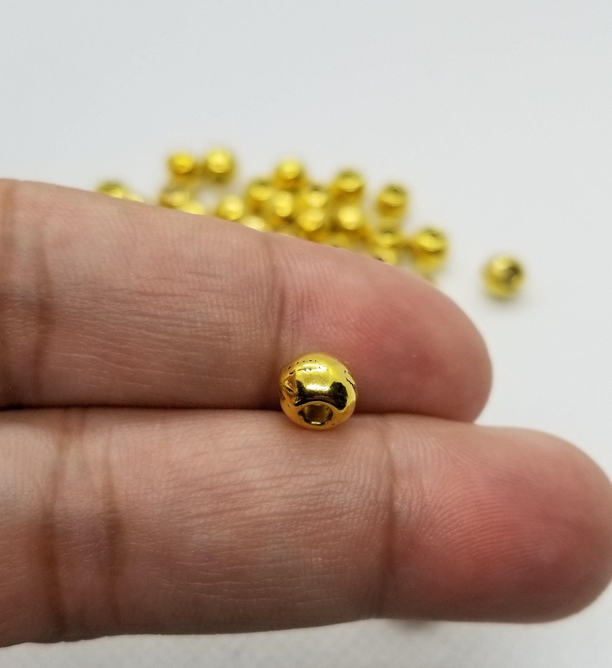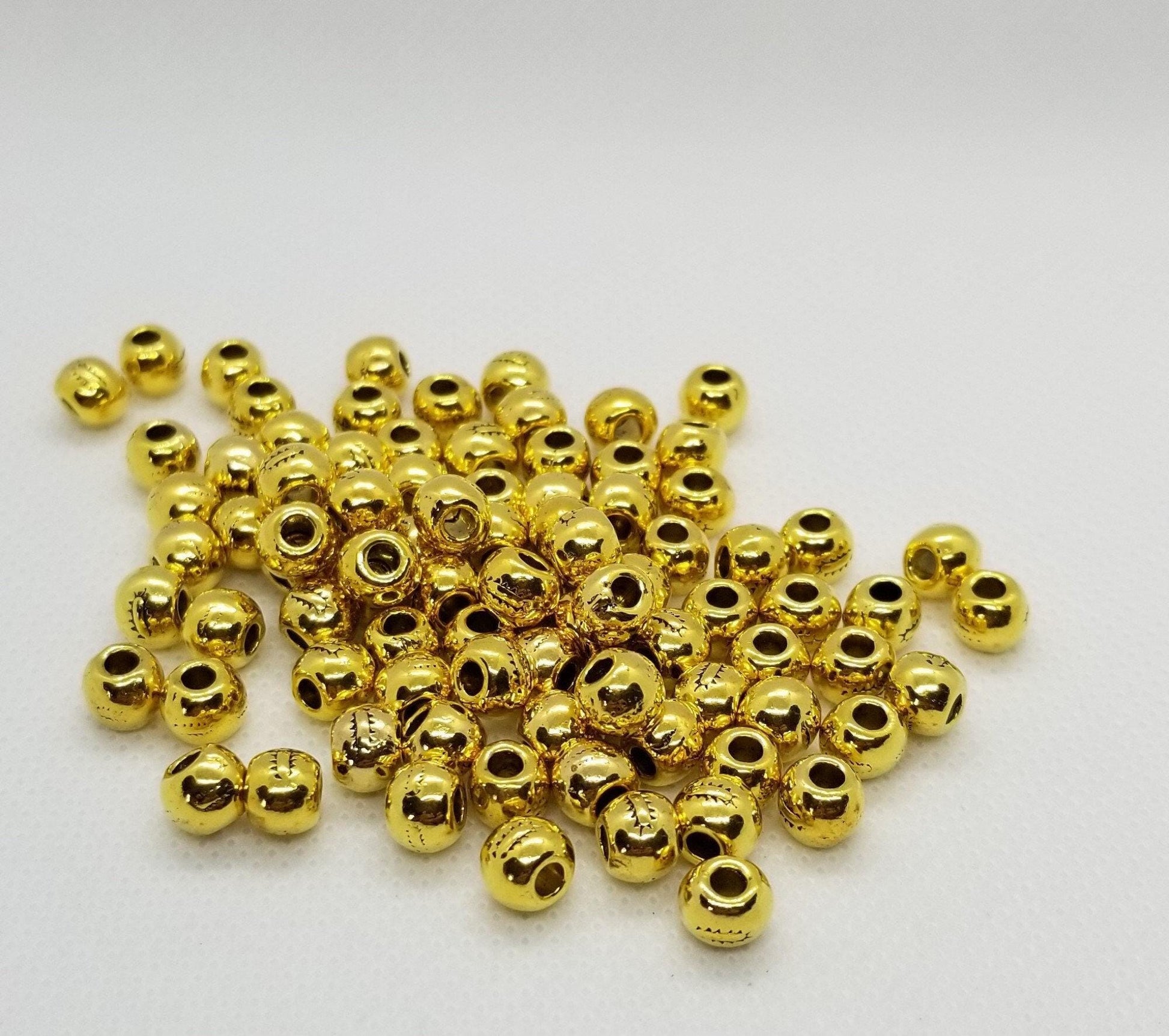 20 pieces Etched Round Bead, Spacer, Antique Gold, Tibetan Style Alloy, Lead Free, Nickel Free, Cadmium Free, 7mm, Large hole 3mm
