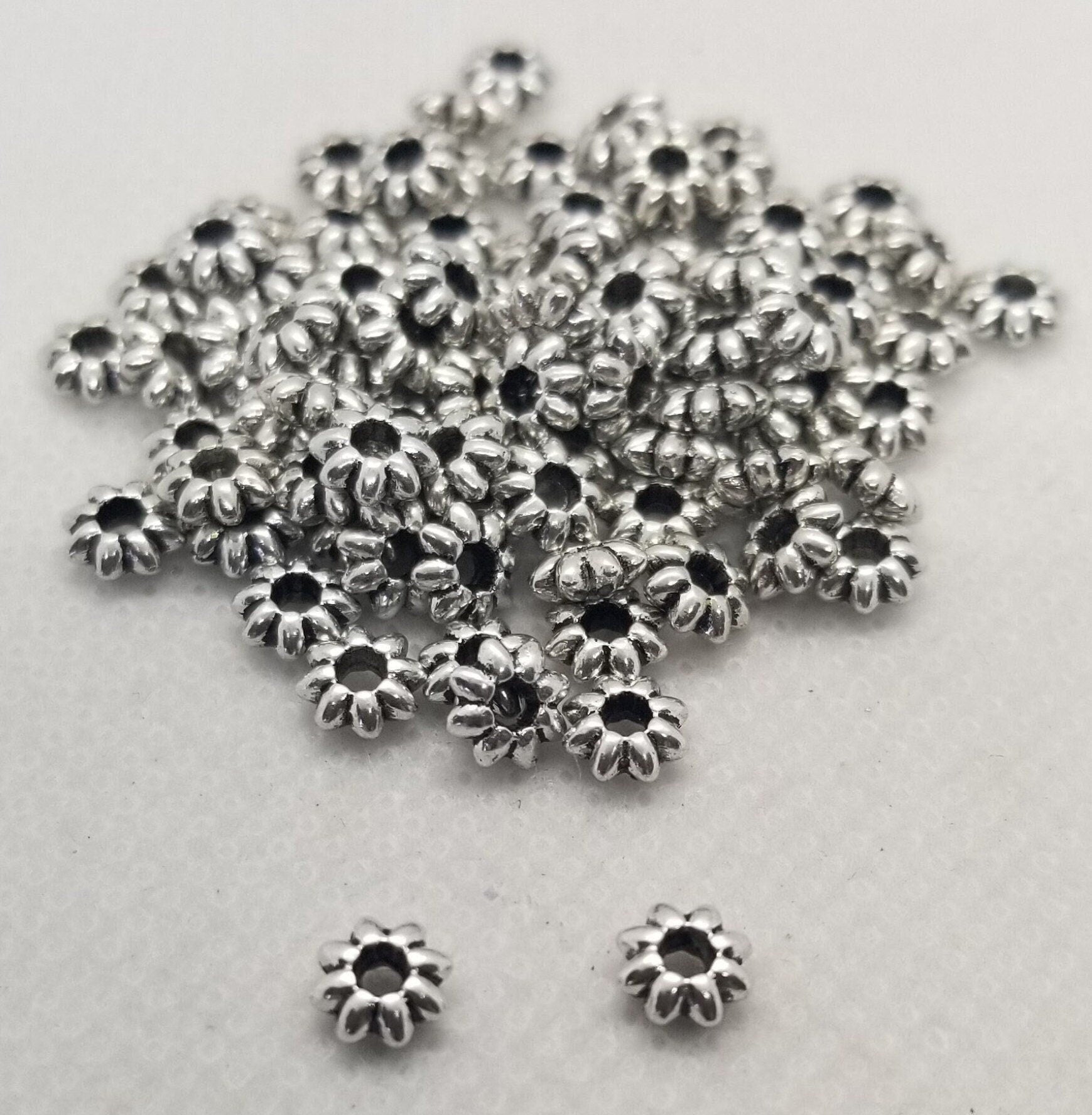 20 pieces Silver Flower Spacer Bead, Tibetan Style Alloy, Cadmium & Lead Free, Antique Silver Star Spacer Bead, 5.5x2mm, Hole 1.8mm