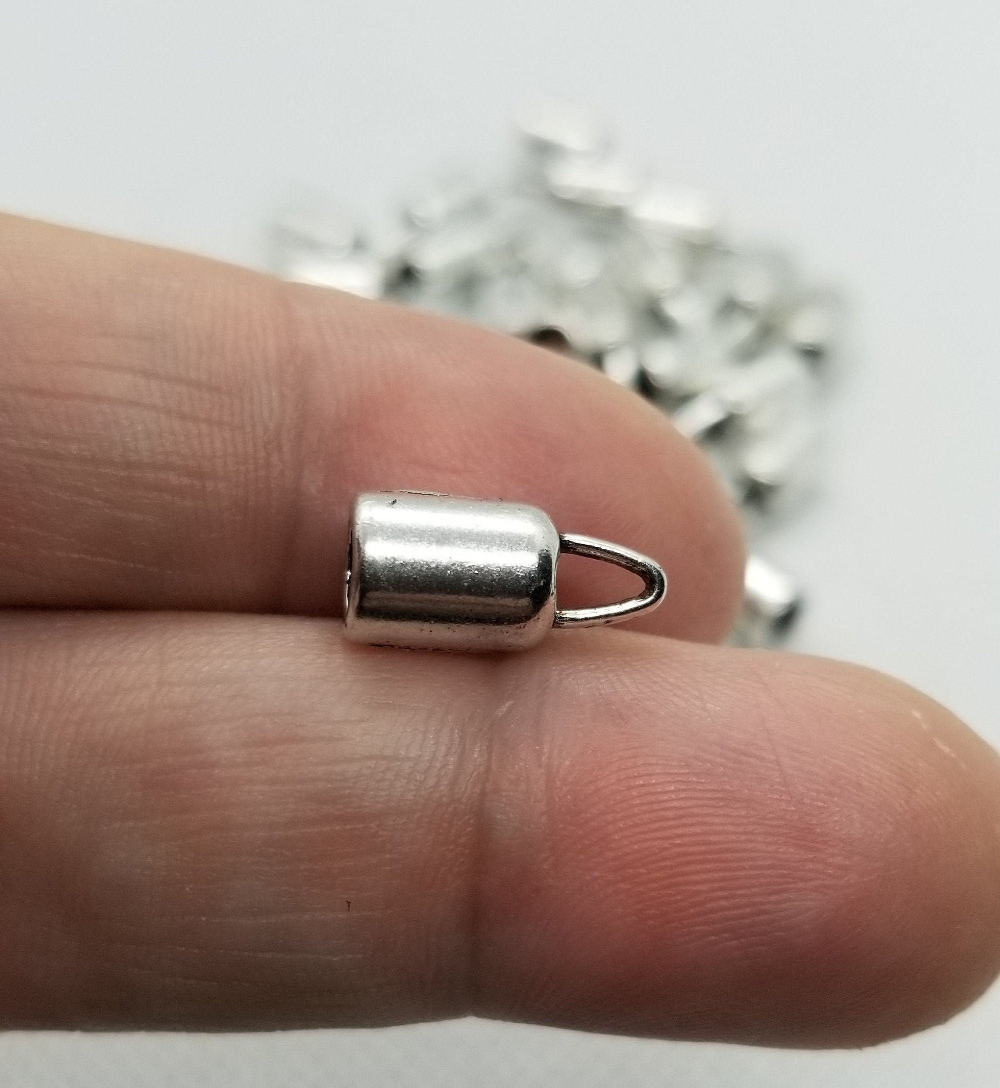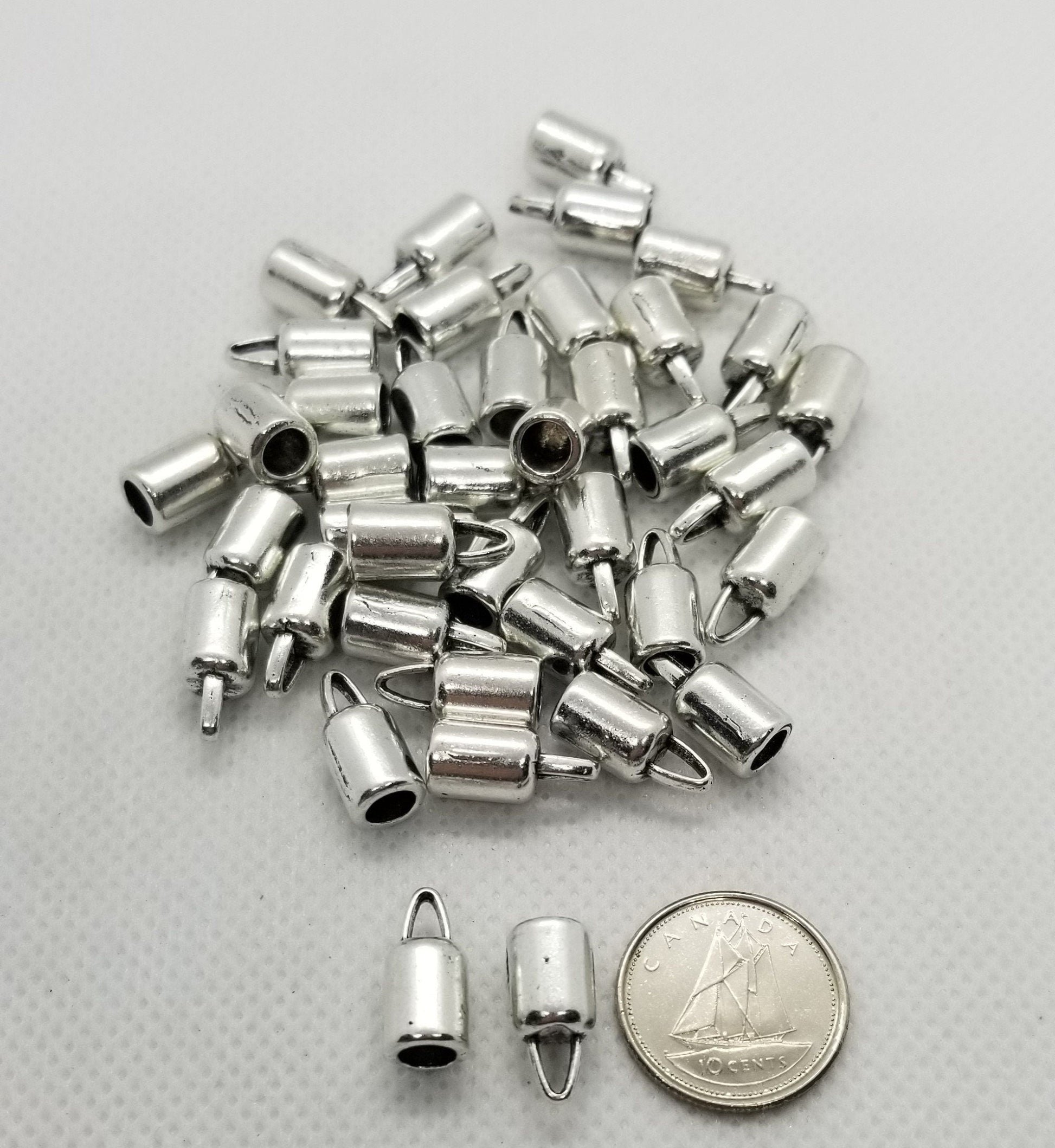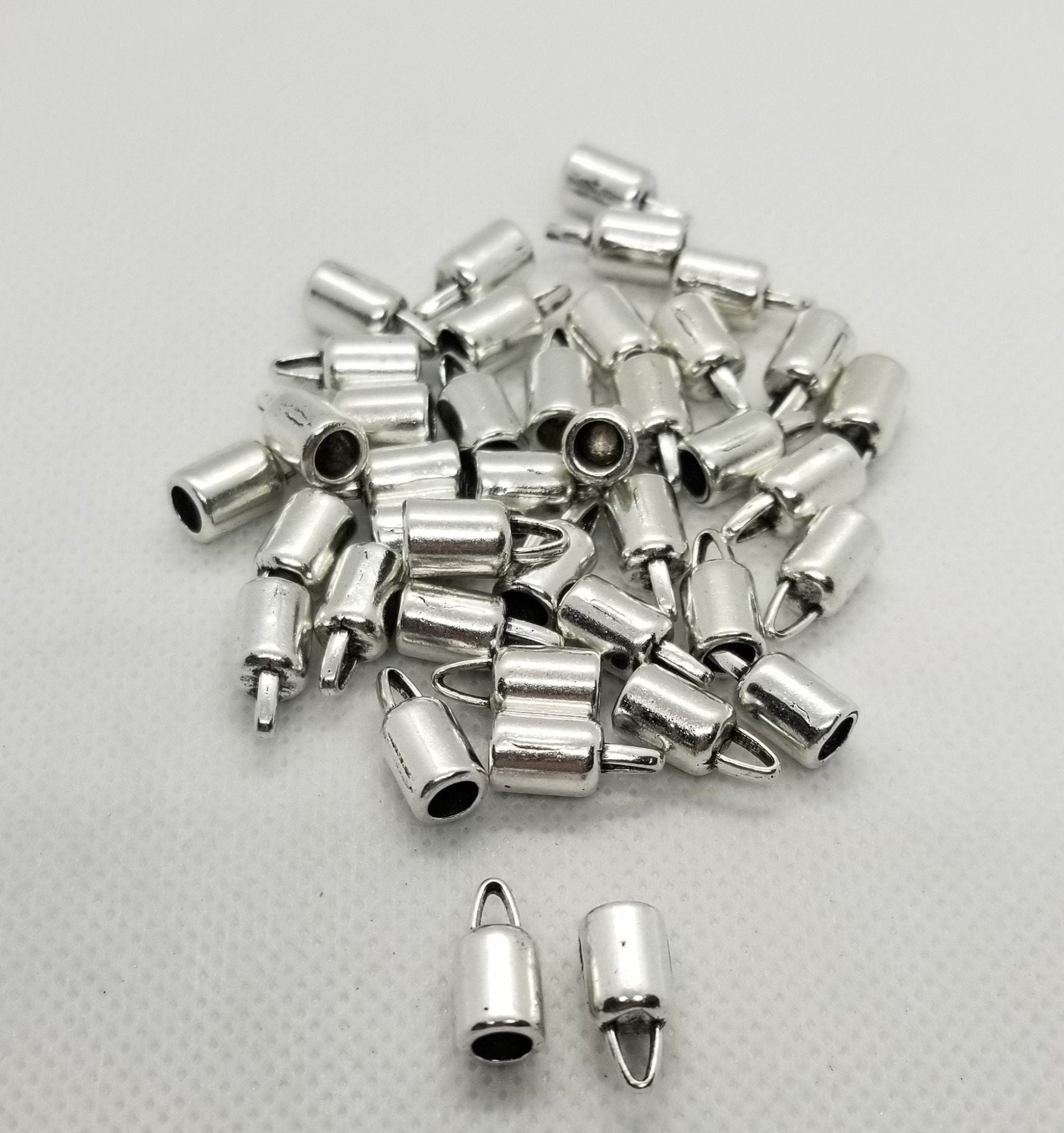 20 pieces Silver Tassel Caps, Cord Ends, End Caps, Antique Silver, Column shape, 14x6.5mm,hole 4mm; Inner diameter 4~5mm