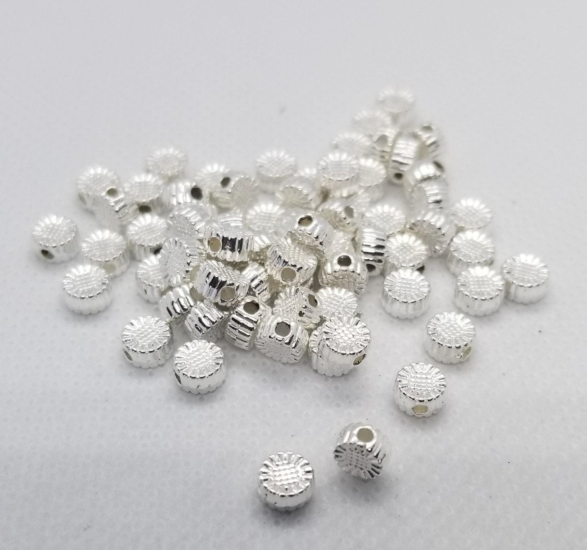 25 pieces Bright Silver Sun Spacer Bead, Disc, Tibetan Style Alloy, Platinum Color, Lead Free and Cadmium Free, 5.5x5.5x3mm, Hole 1mm