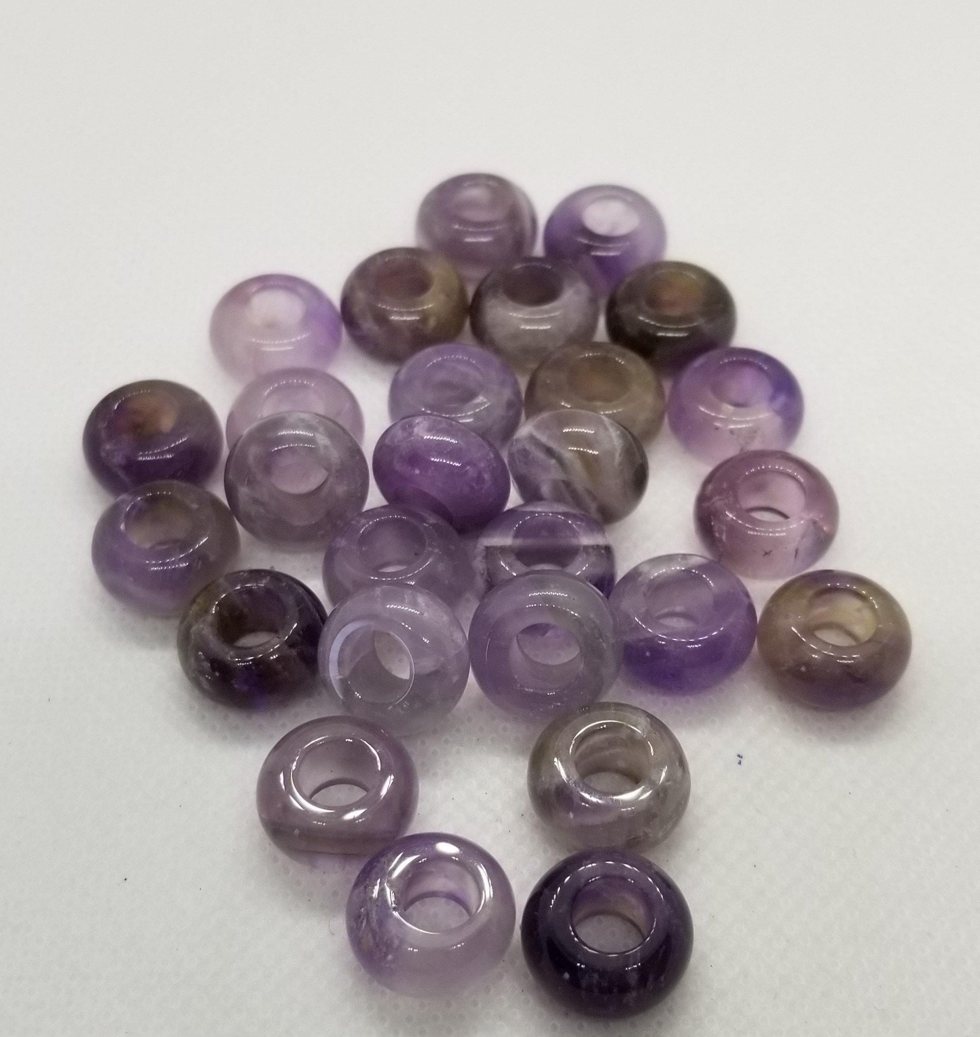 4 pcs Natural Amethyst Beads, large hole bead, rondelle, polished, 14x8mm, hole 6mm, macrame hair beard kumihimo jewelry