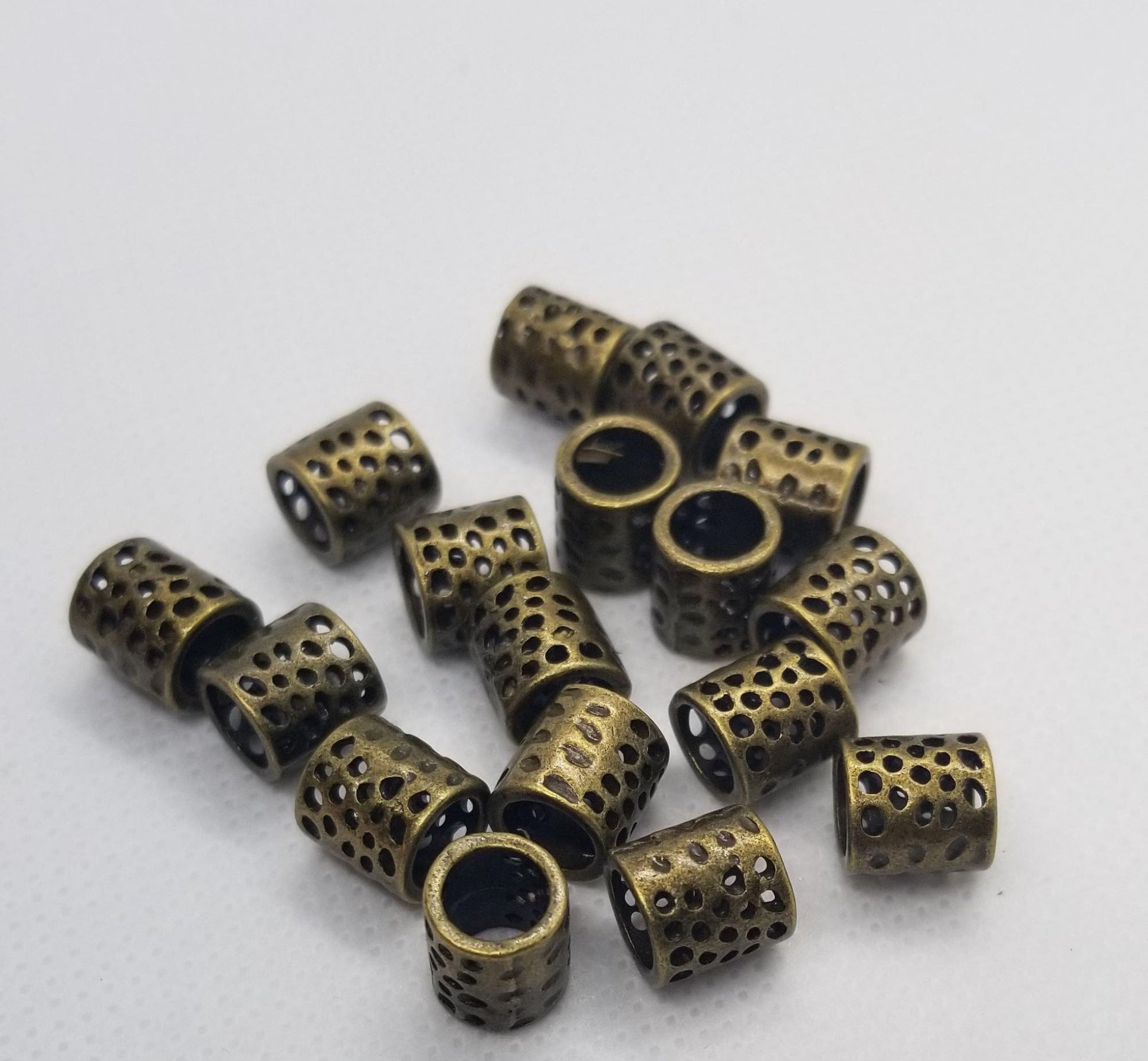5 pcs Antique Bronze Tibetan style spacer beads, Large Hole, Lead Nickel Cadmium free, column, 9x8mm, inner diameter 5.5mm, hair beard bead