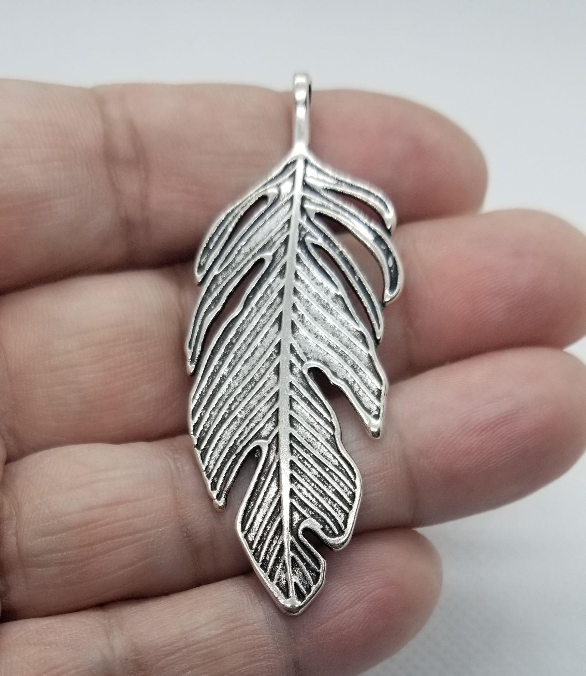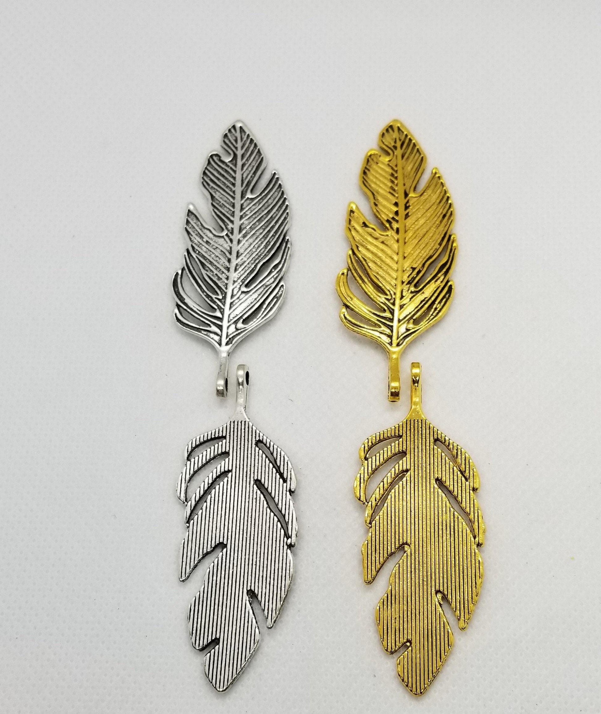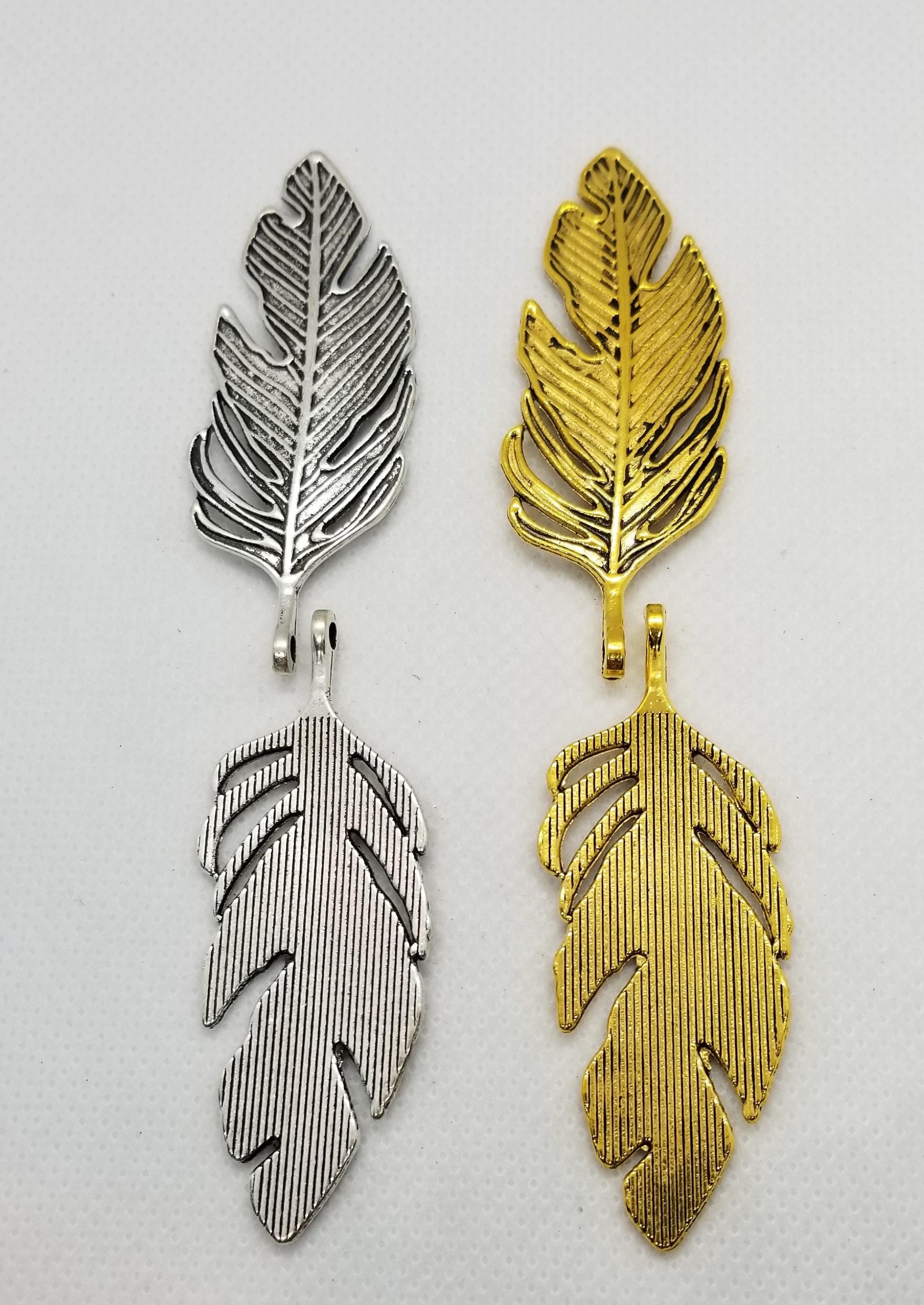 5 pcs Large Feather Pendant, Antique Silver or Gold, Lead, Nickel, Cadmium free, 62x23x2mm, hole 2mm