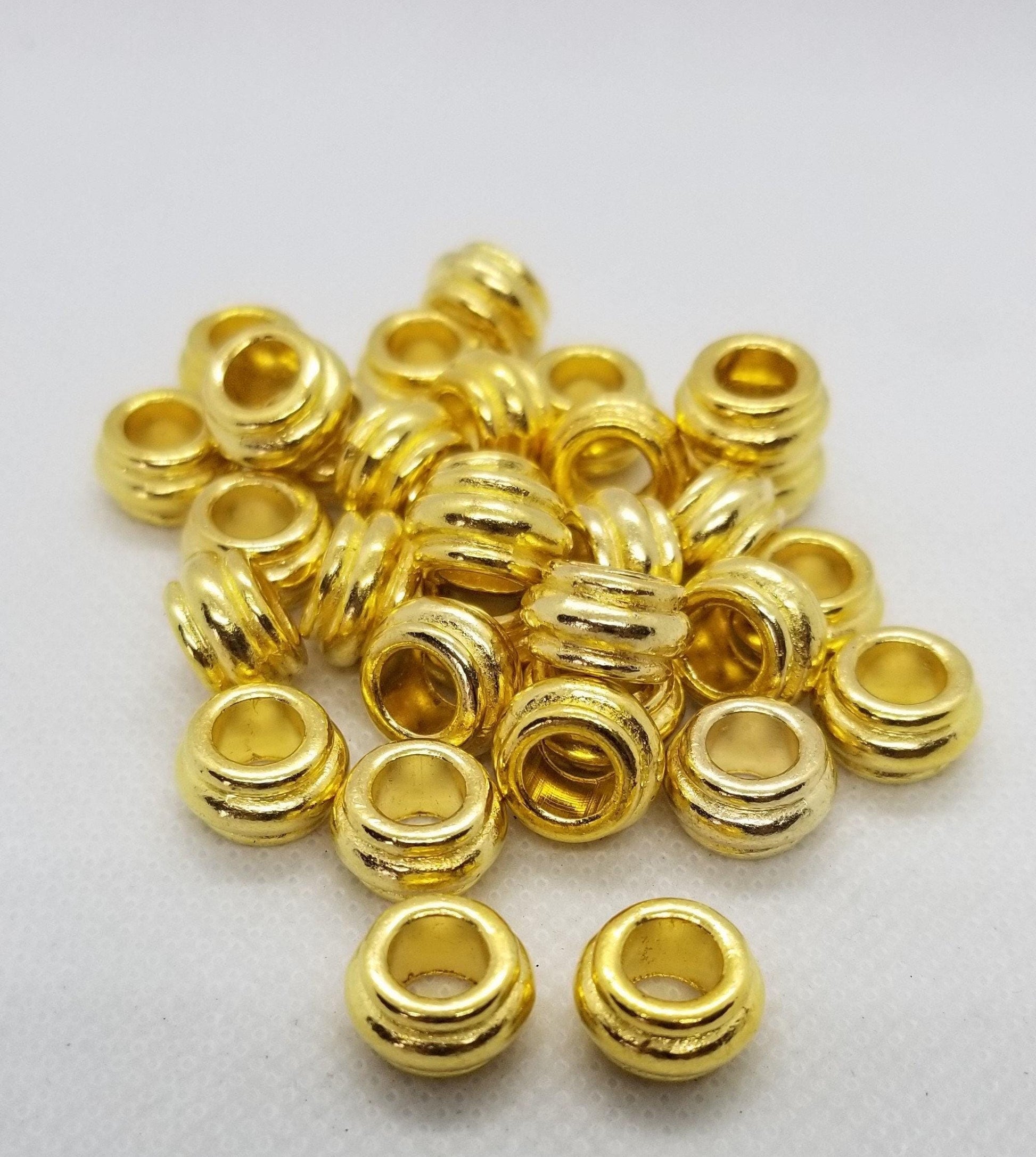 5 pieces Golden Barrel Spacer Beads, Tibetan Style, Cadmium, Lead Free, 12x7mm, Large Hole 6.5mm, Hair or Beard Beads