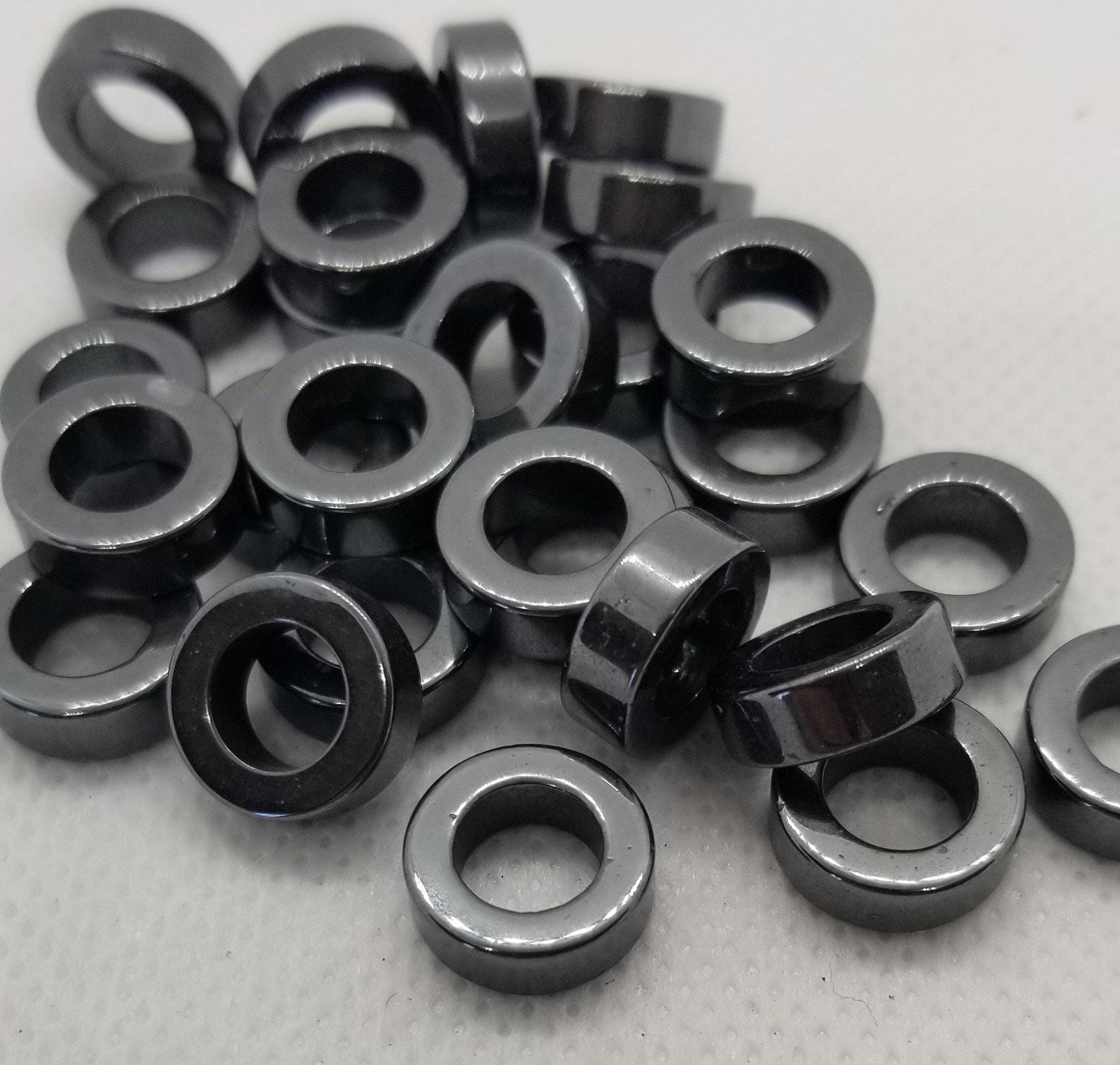 5 pieces Large Black Hematite Spacer Ring, Non-magnetic, Synthetic, Circle, 12.5x4mm, Hole 7.5mm, Hair or Beard Jewelry