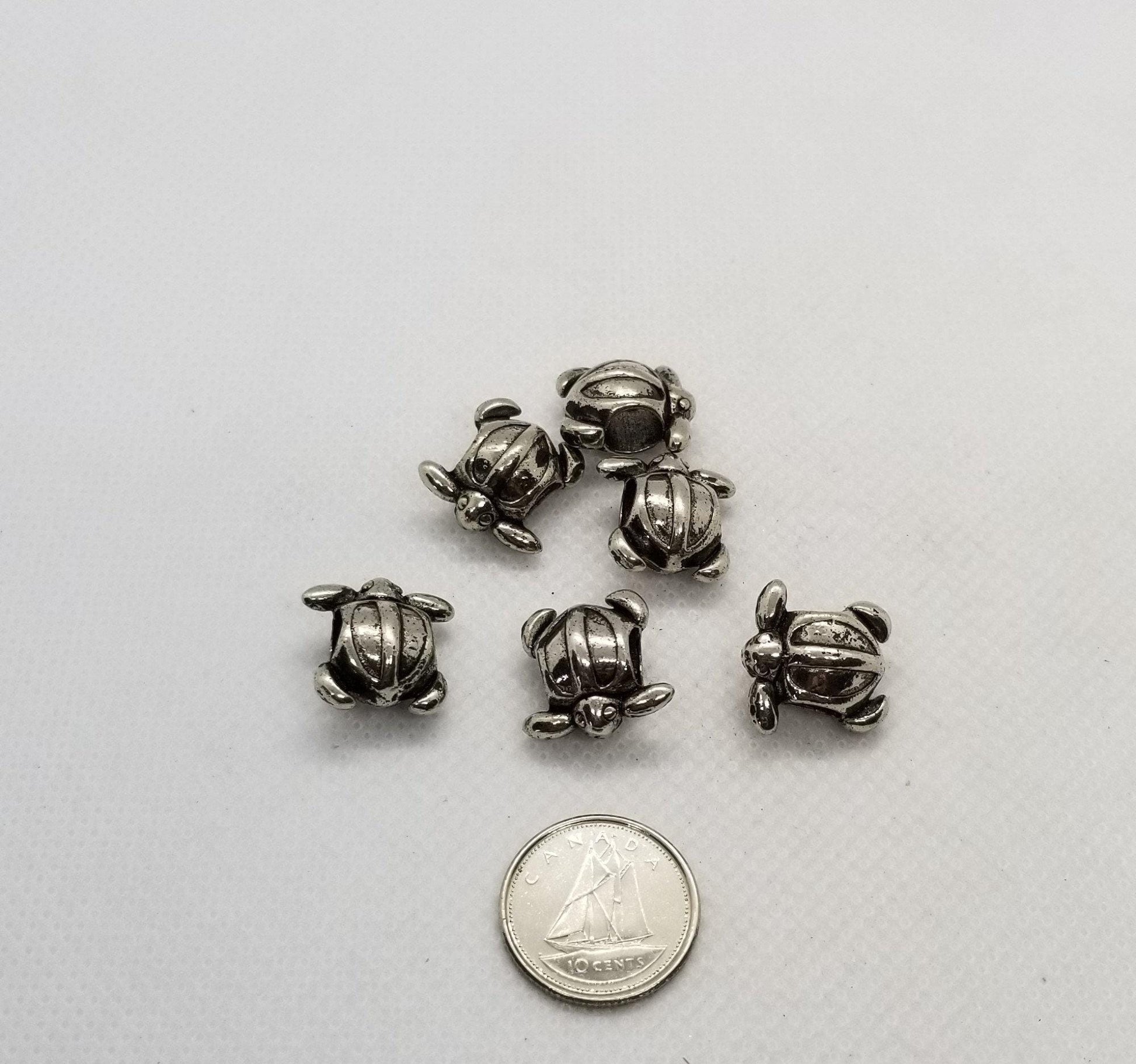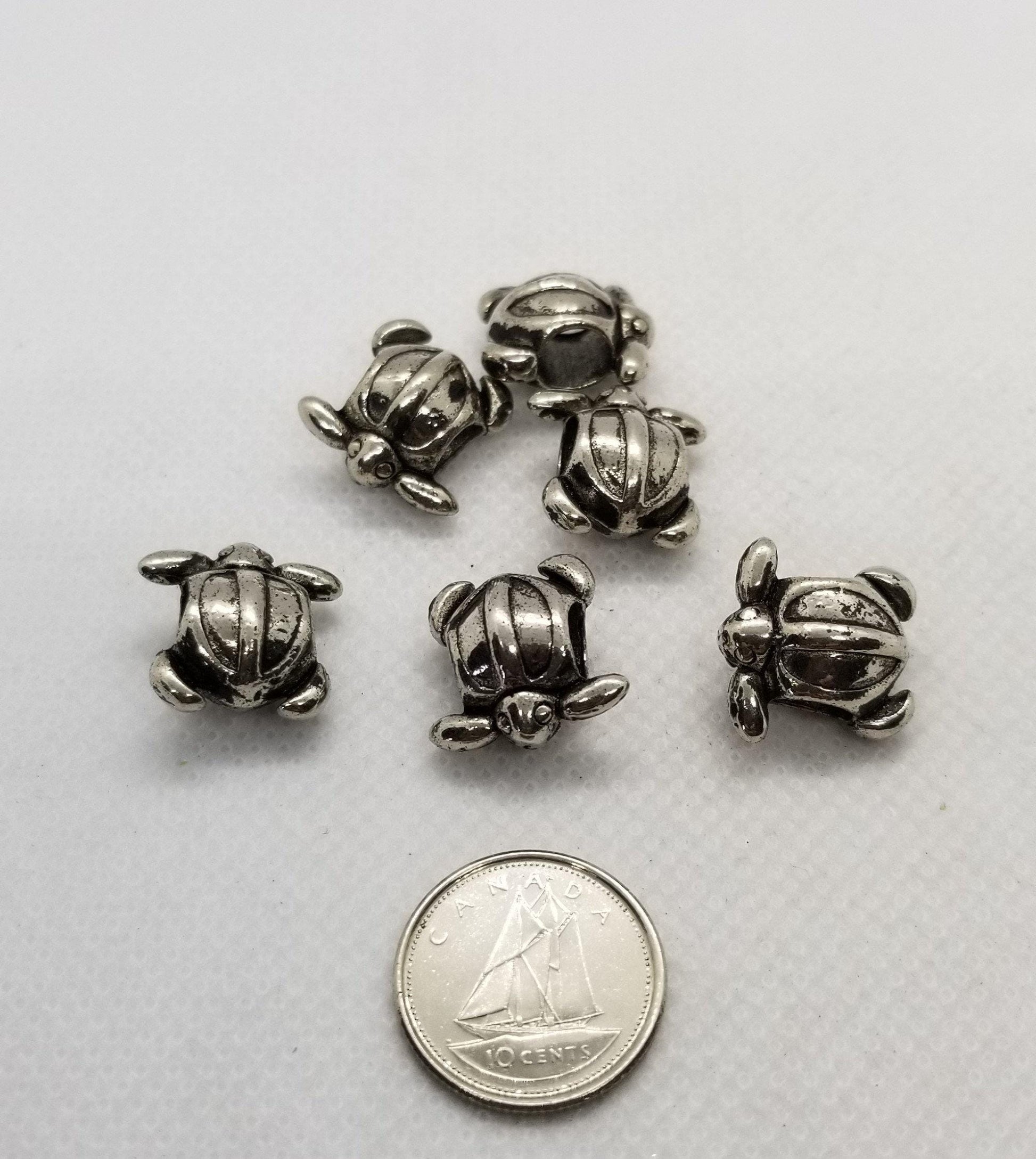 5 pieces Large Hole Tortoise Spacer Bead, European Alloy Beads, Dark Antique Silver, Gunmetal, 14.5x14.5x9mm, Hole 5mm