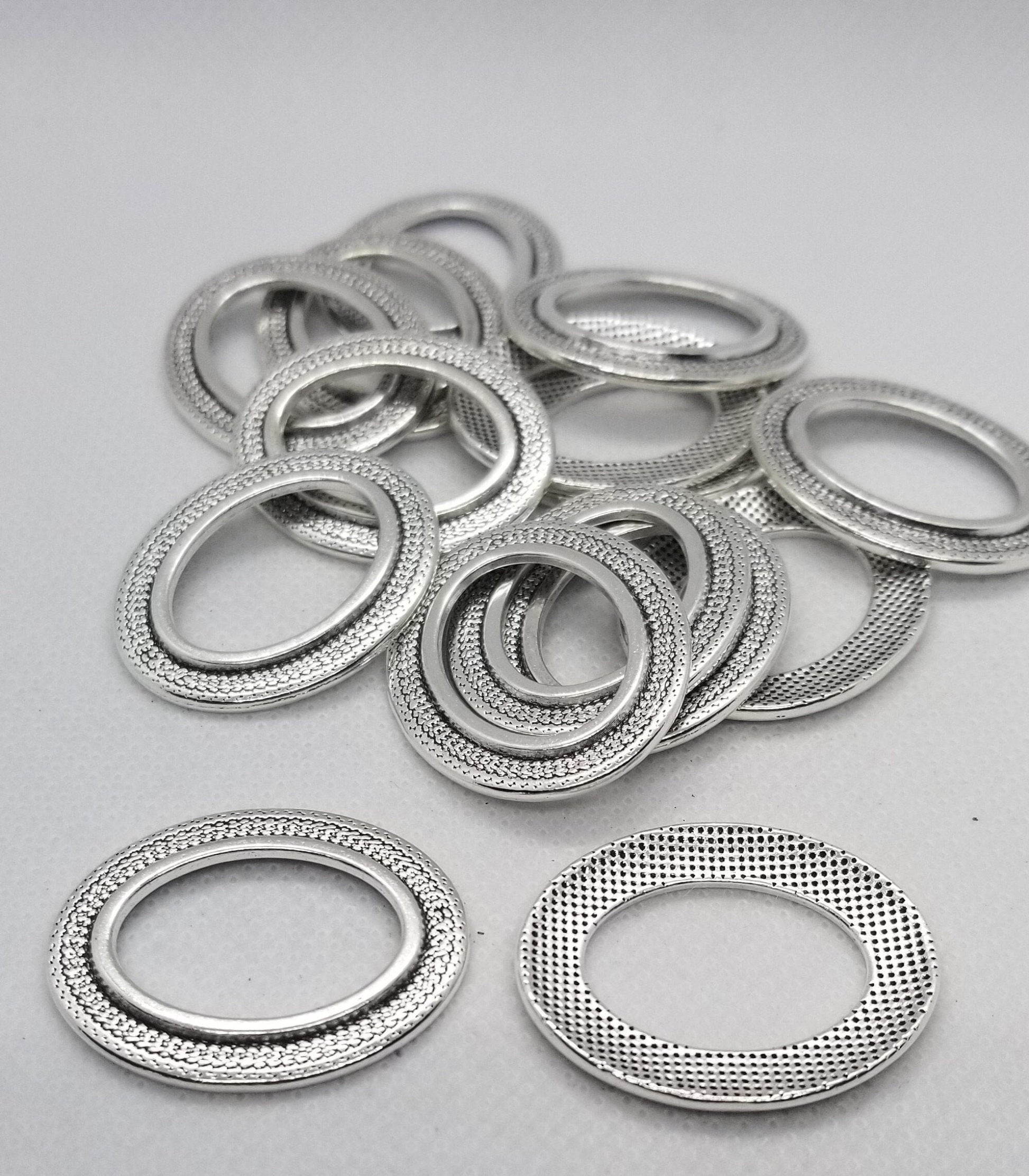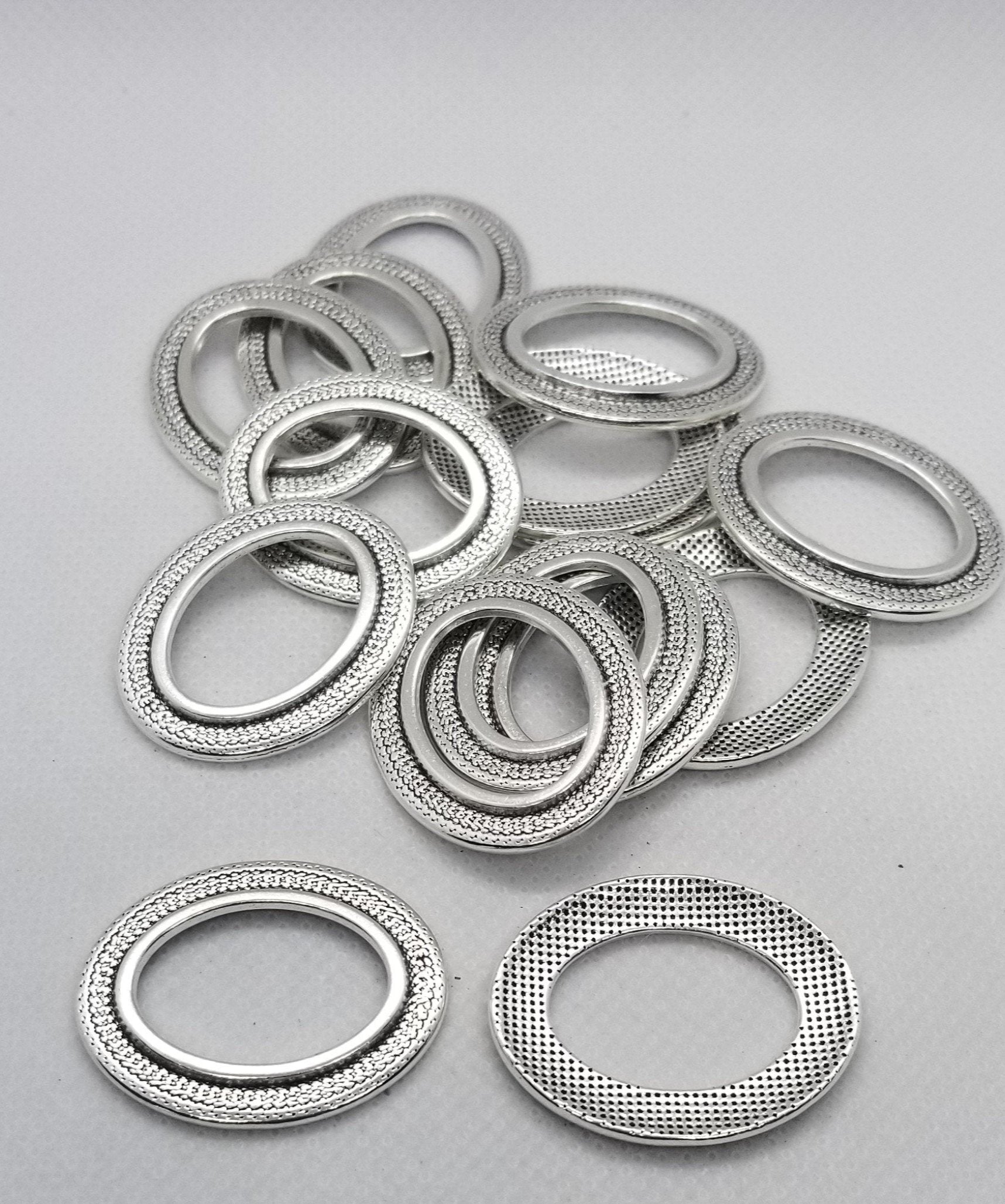 5 pieces Large Silver Oval Linking Rings, Bezel, Frame, Lead, Cadmium Free, 33x27x2.5mm, Inner Diameter 16x21mm