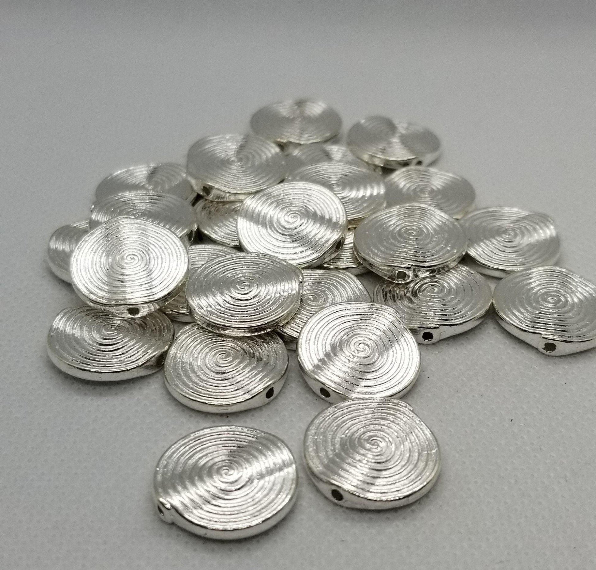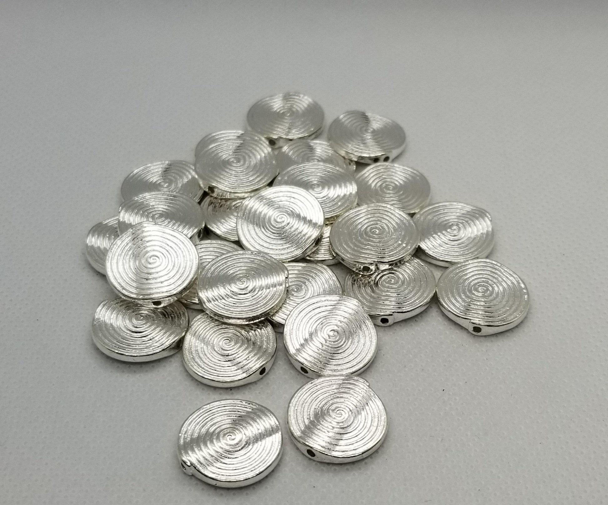 5 pieces Silver Coin Spacer Bead, Tibetan Style Alloy, Lead, Cadmium Free, Flat Round, Silver, 18x3.2mm, Hole 1.5mm