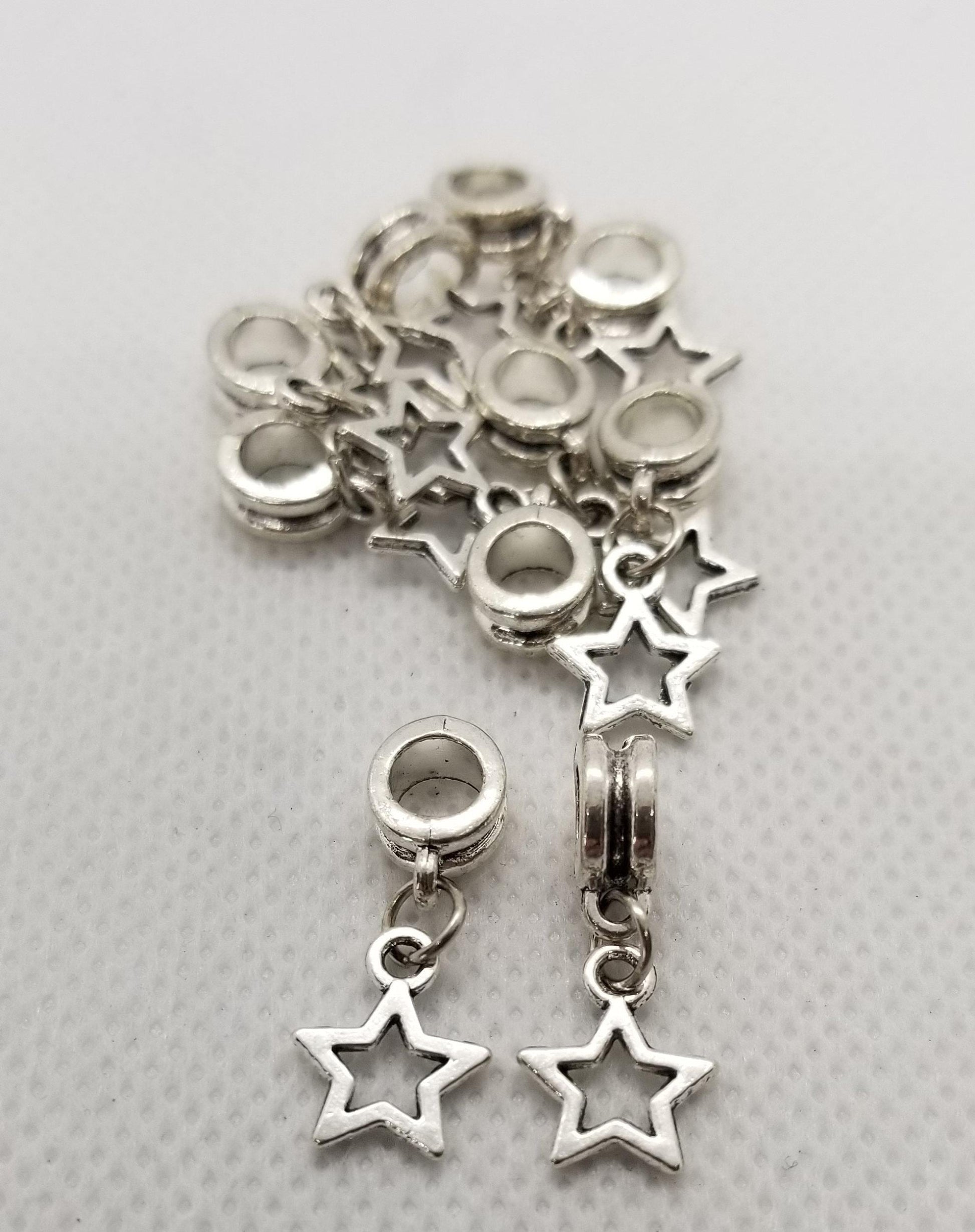 5 pieces Silver Star European Dangle Charms, Hollow Star, Antique Silver, 23mm long, Hole: 5mm