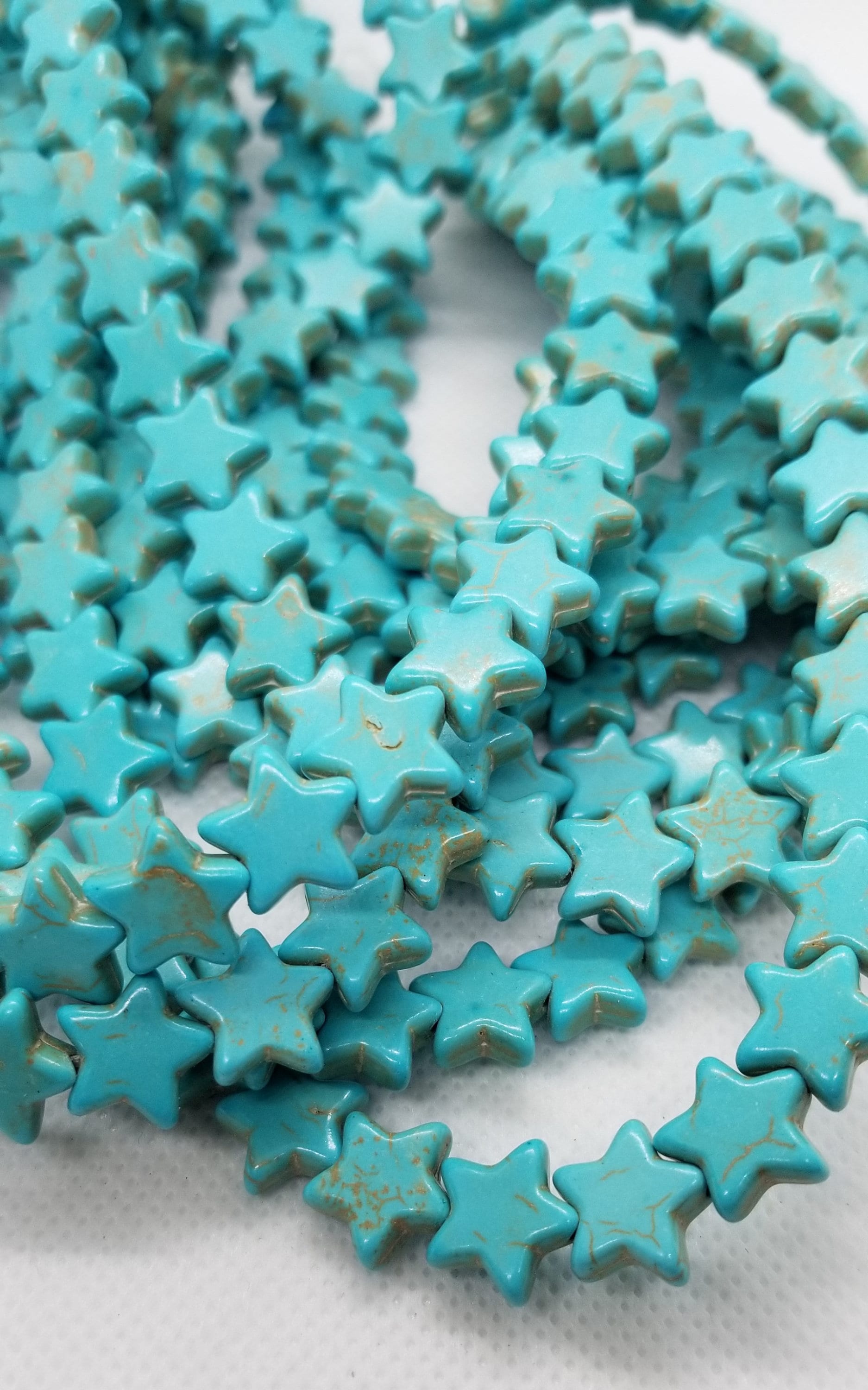 Magnesite Star Beads, Antique White or Turquoise, 1 strand, Synthetic, Size and count in description, Full 15" strand, DIY Jewelry Supplies