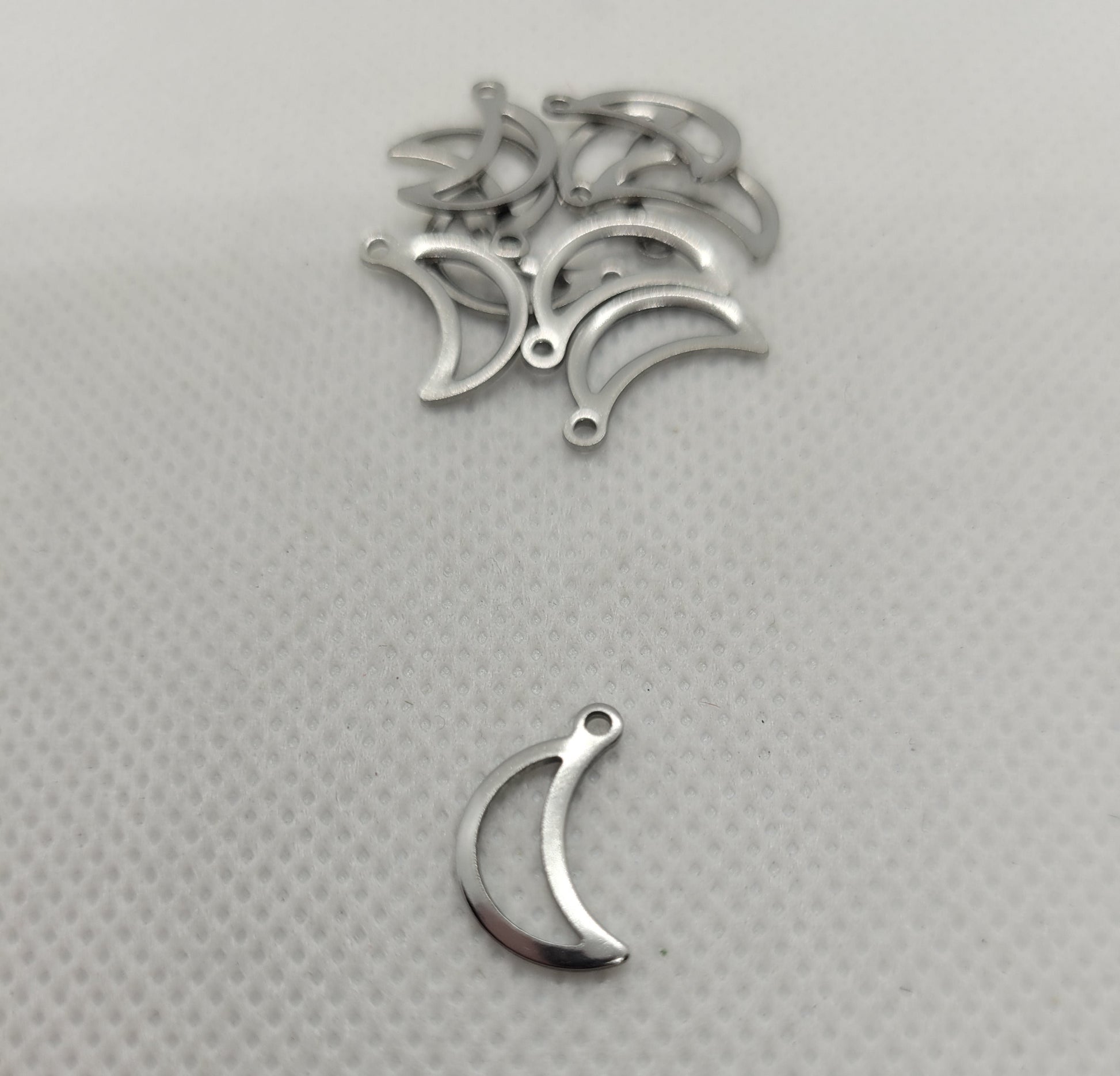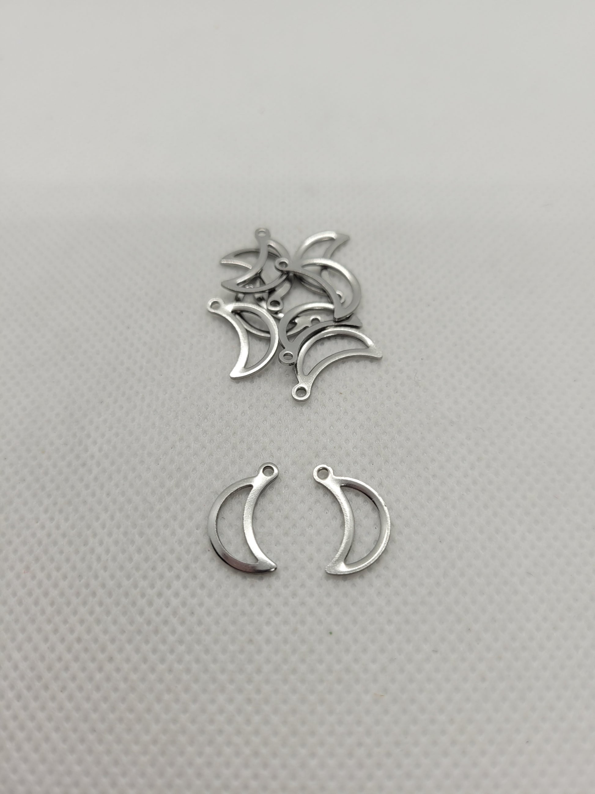 Perfect for necklaces, bracelets, or crafting! Elevate your DIY projects with these beautiful Stainless Steel Color moon charms today!