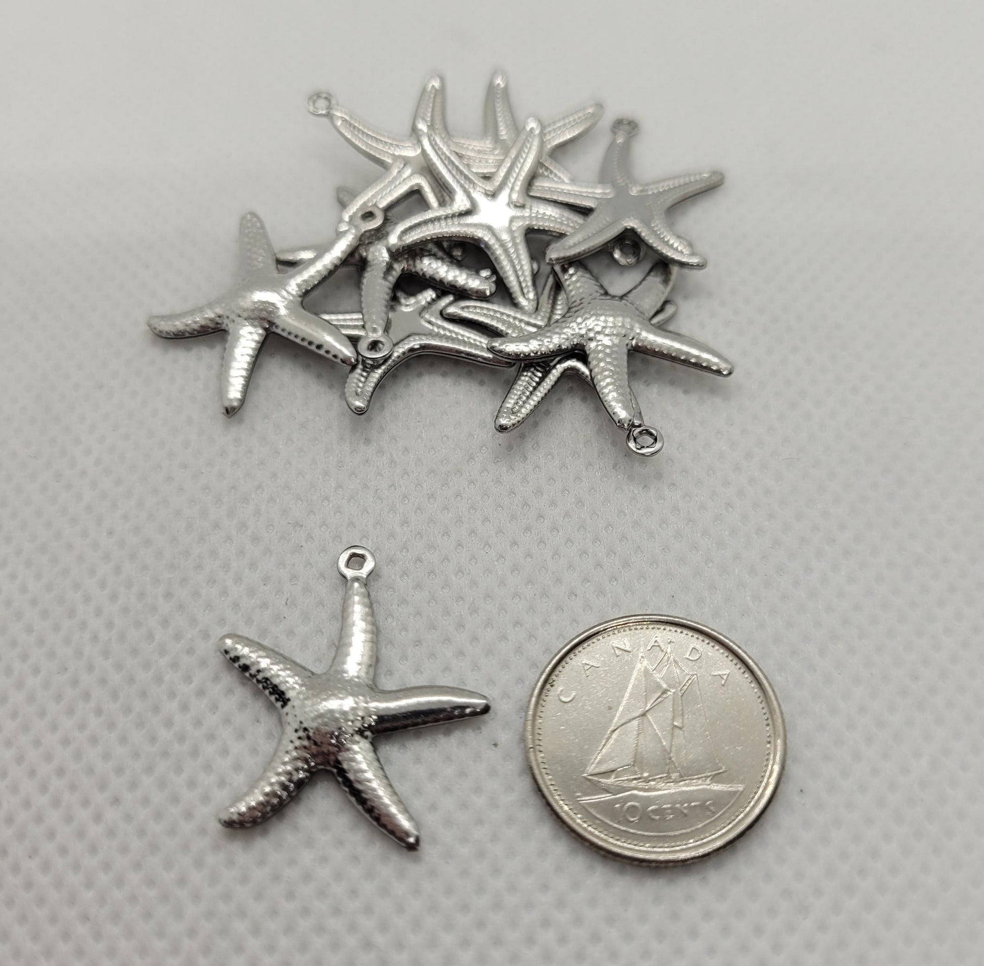 Introducing our stunning Starfish Pendant Sea Star Charms in a set of 10 pieces! Made from high-quality 304 Stainless Steel, these silver charms feature a delicate stippled design measuring 22x20.5x2mm with a 1mm hole. Enhance your jewelry creations with these unique pieces, and add optional jump rings for easy attachment. Perfect for ocean-themed jewelry projects or for adding a touch of seaside beauty to your creations!